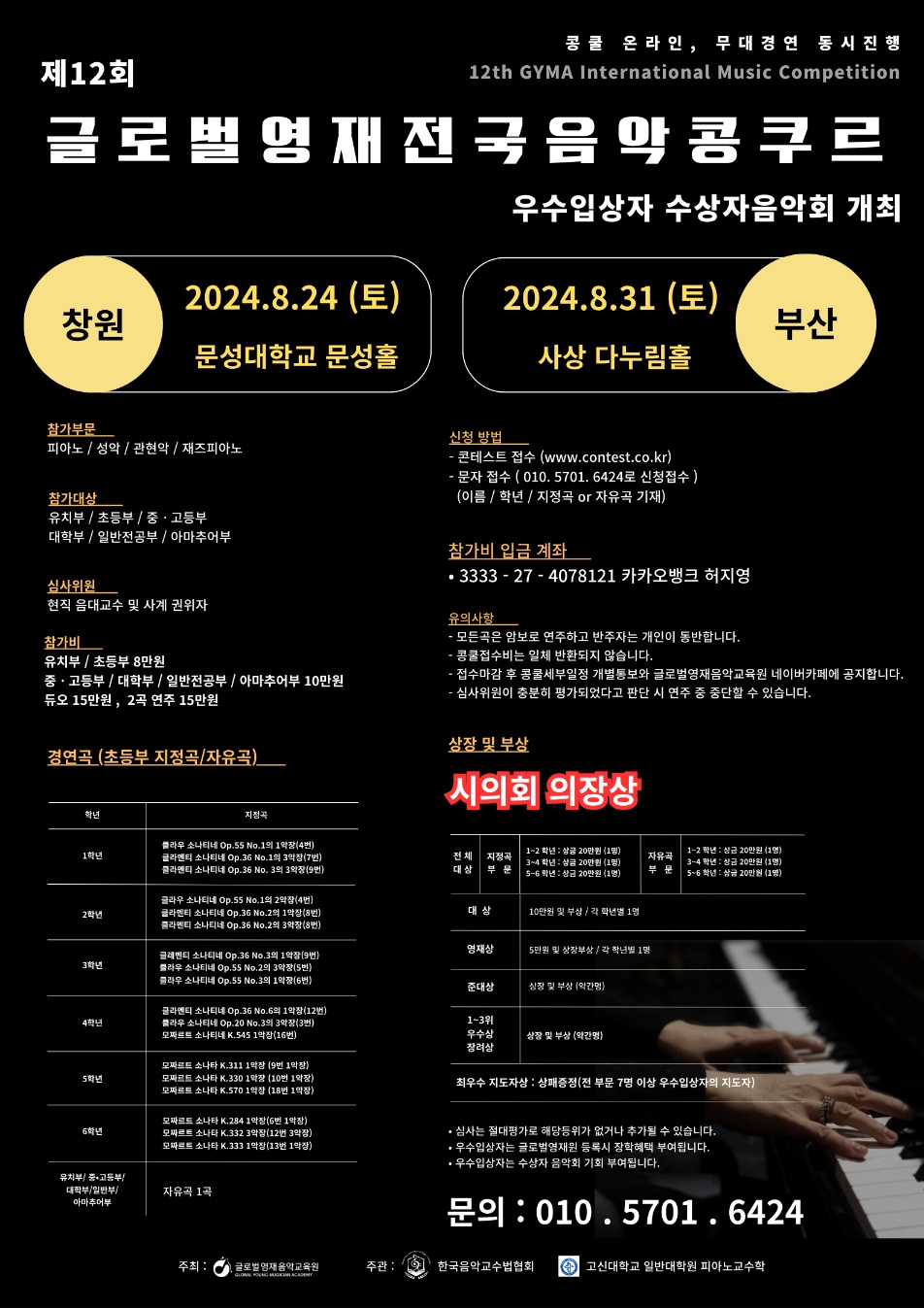 📌 참가부문 : 피아노 / 성악 / 관현악 / 재즈피아노
