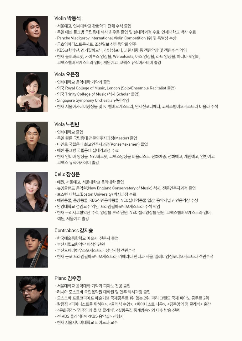 Vn. 우정은, 이주은 Vla. 오은정 Vc. 정재윤 Pf. 김주영