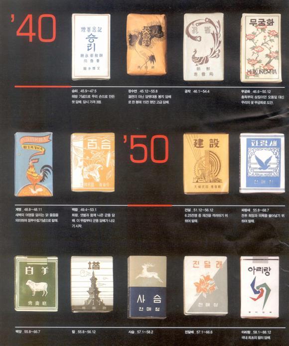 백양/풍년초/사슴/건설/진달래/아리랑/탑/파랑새