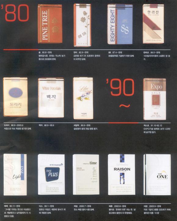 솔 골든/ 솔 박하/ 88멘솔/88민트/88골드/마라도/백자/장미/도라지/한라산/라일락