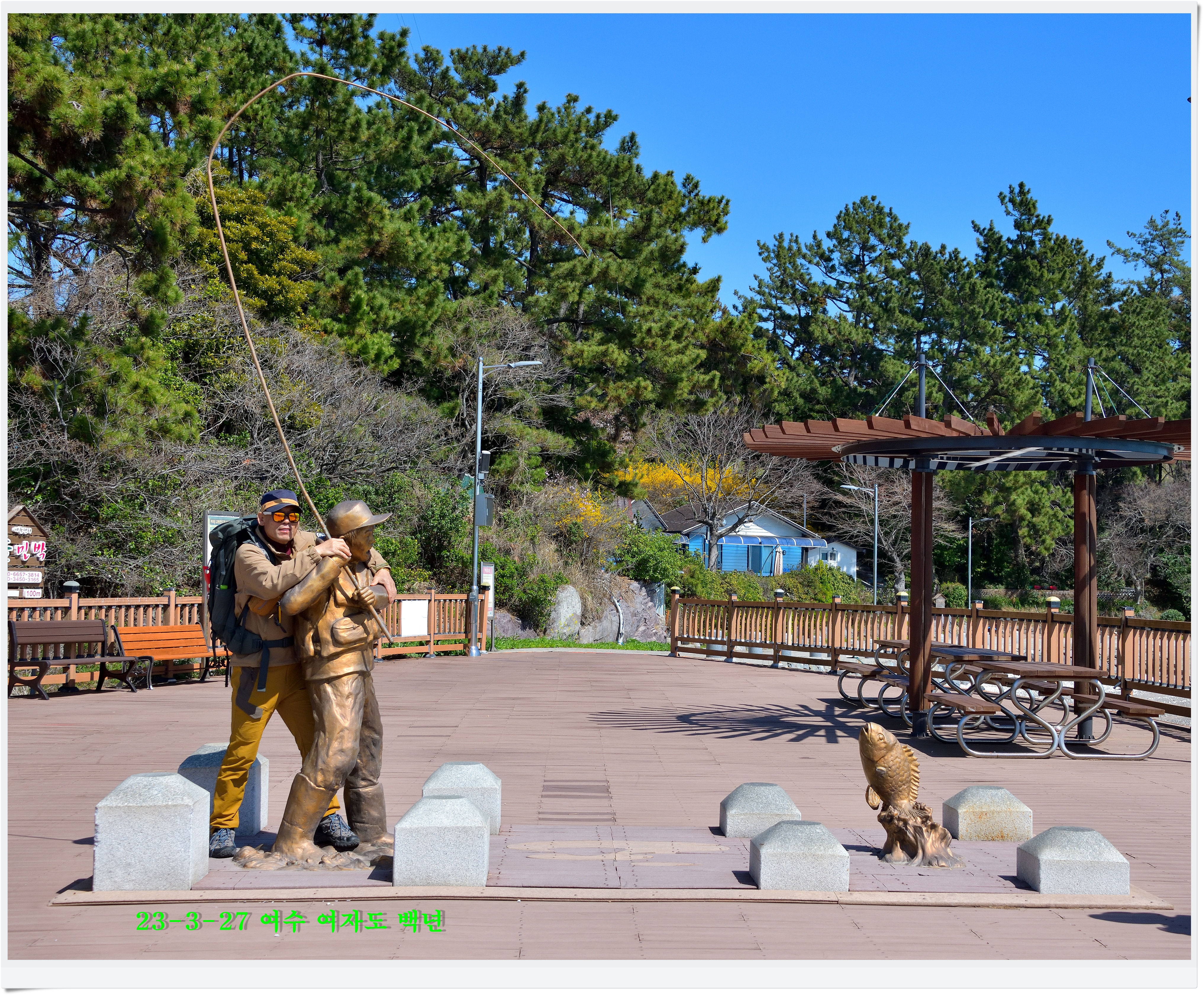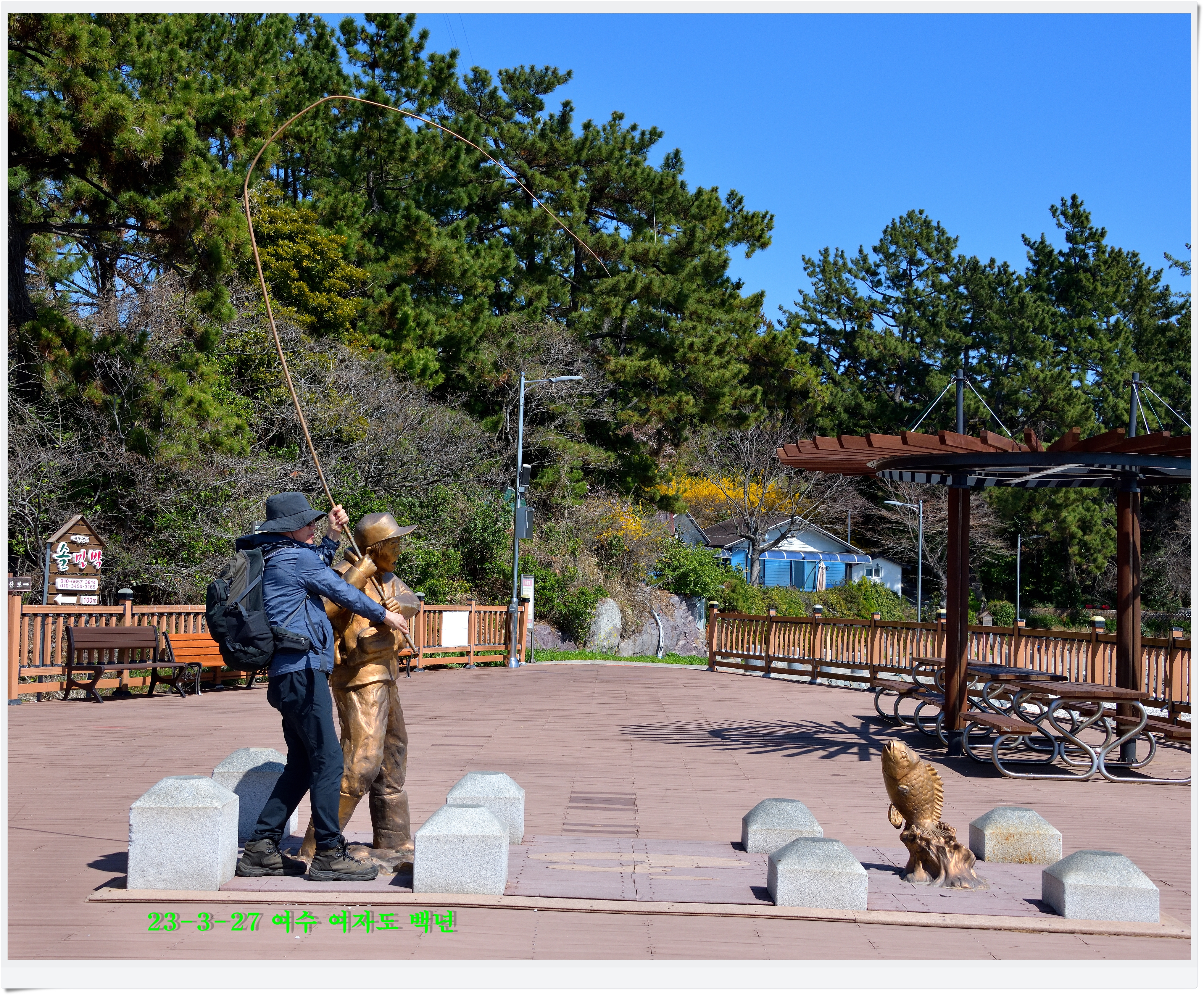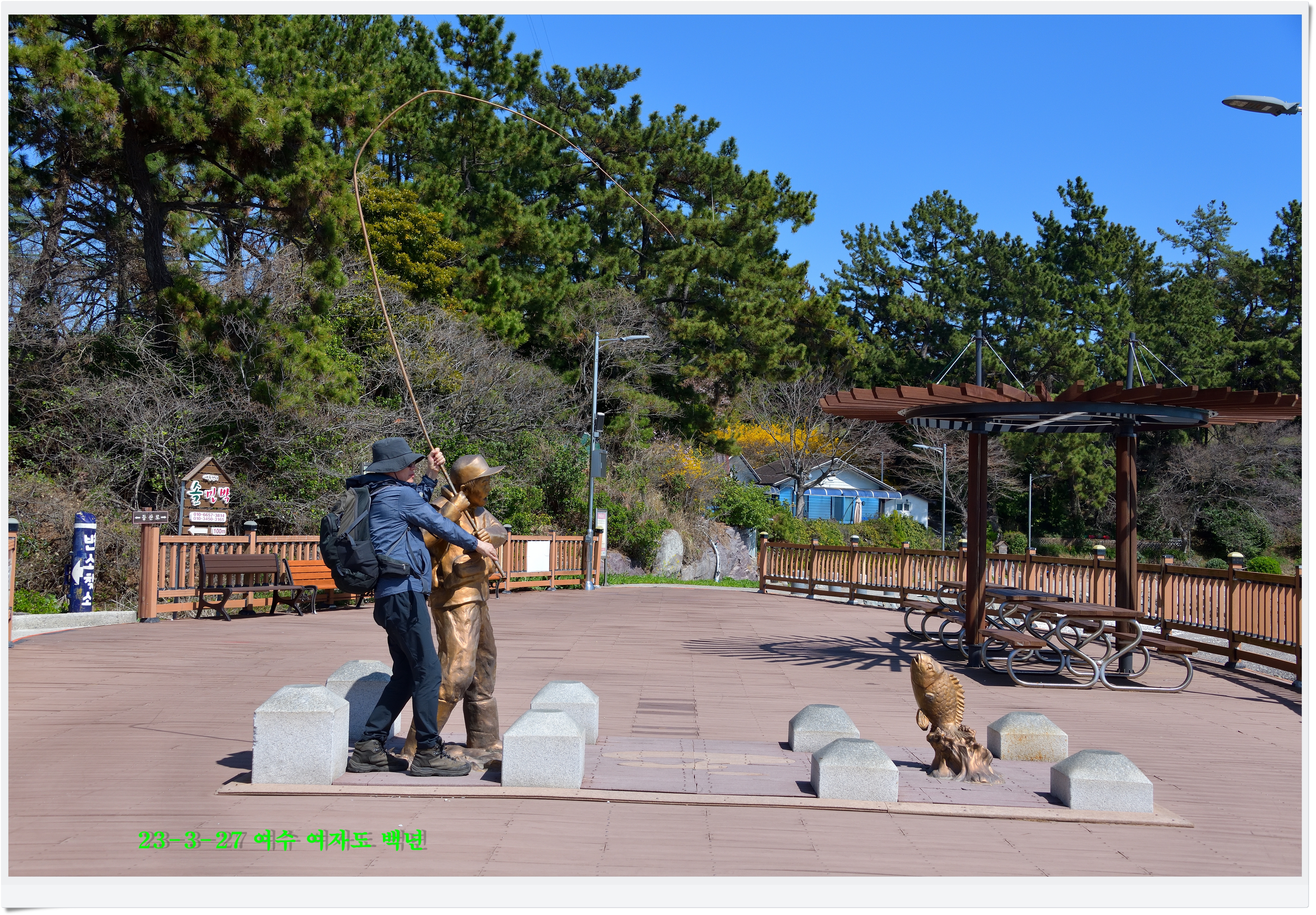 참돔 한 마리를 낚아 올리는 조형물 앞에서 인증 사진을 남긴다.