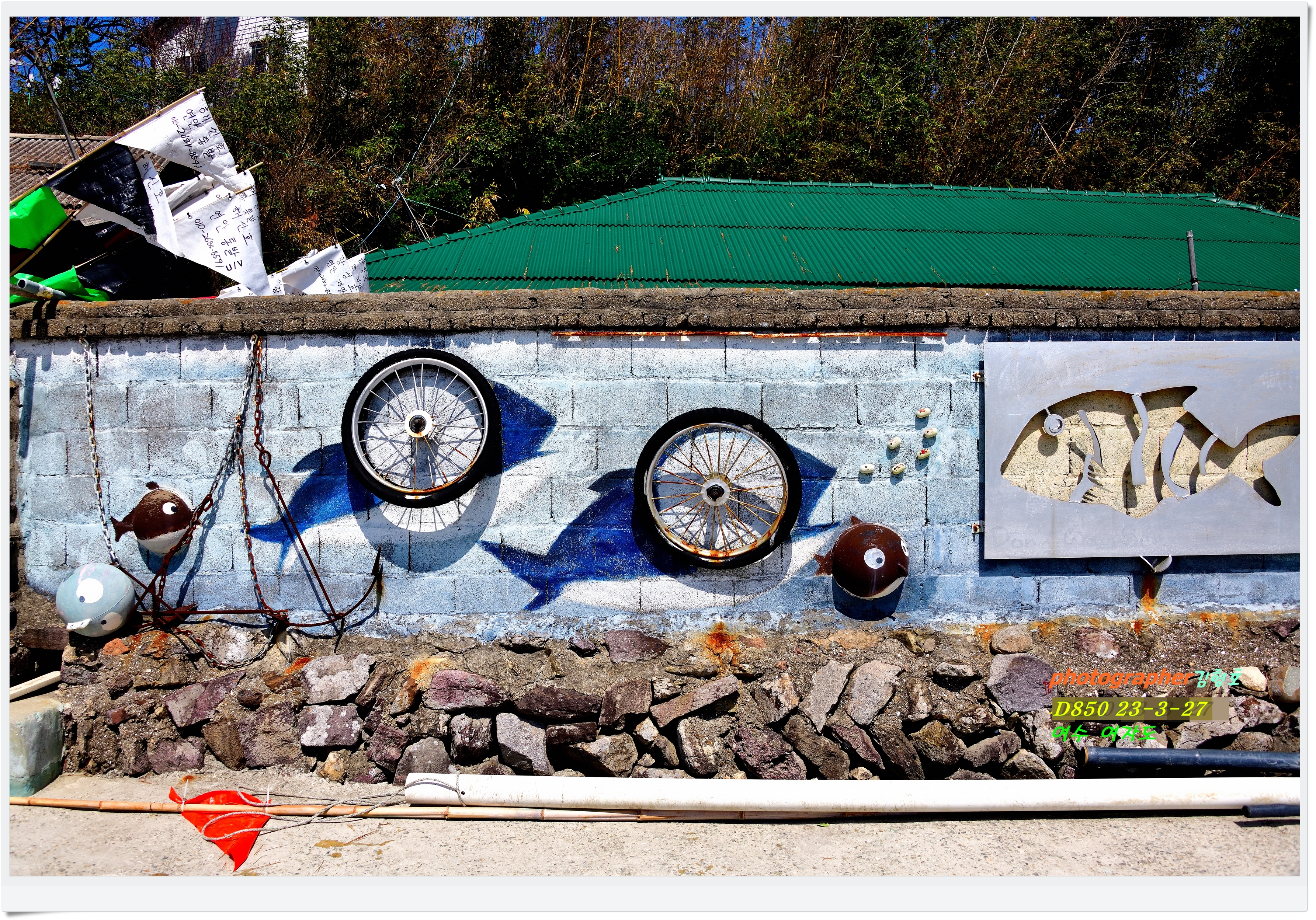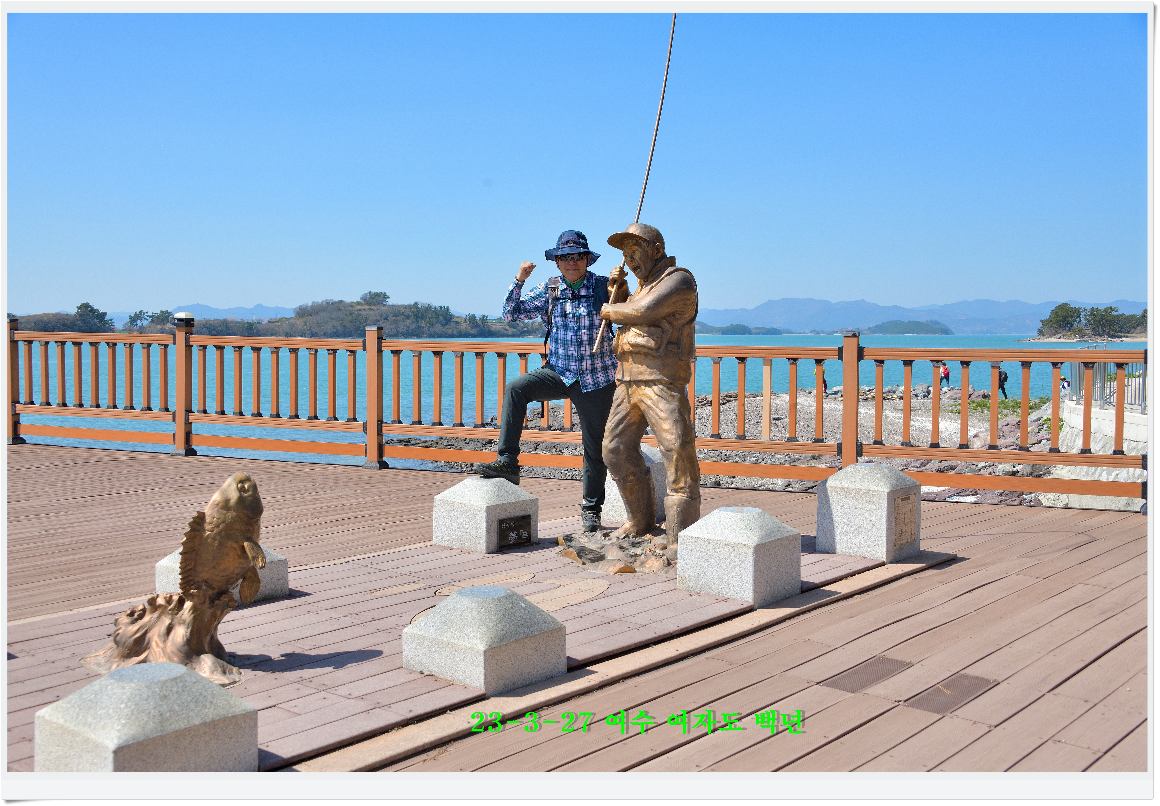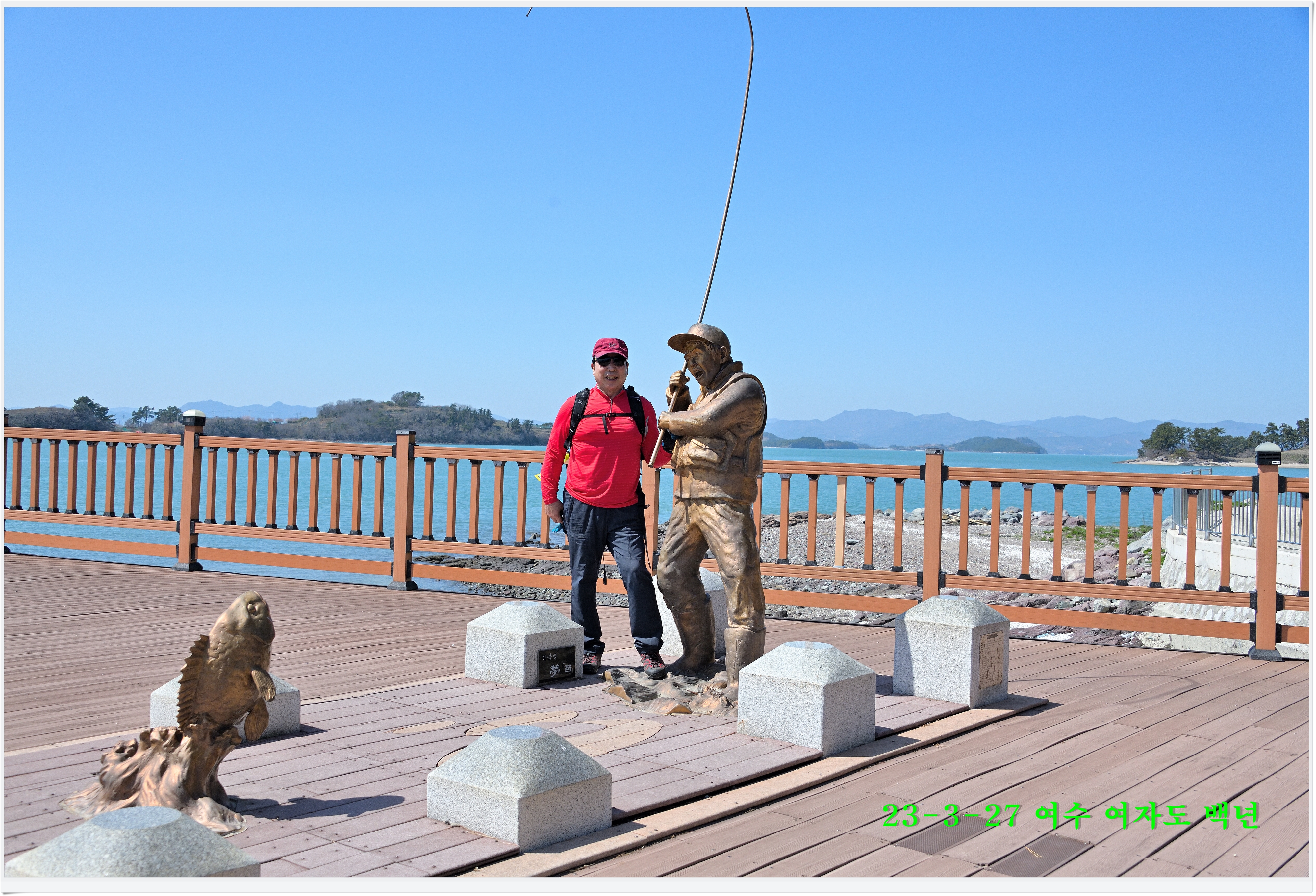 참돔 한 마리를 낚아 올리는 조형물 앞에서 인증 사진을 남긴다.
