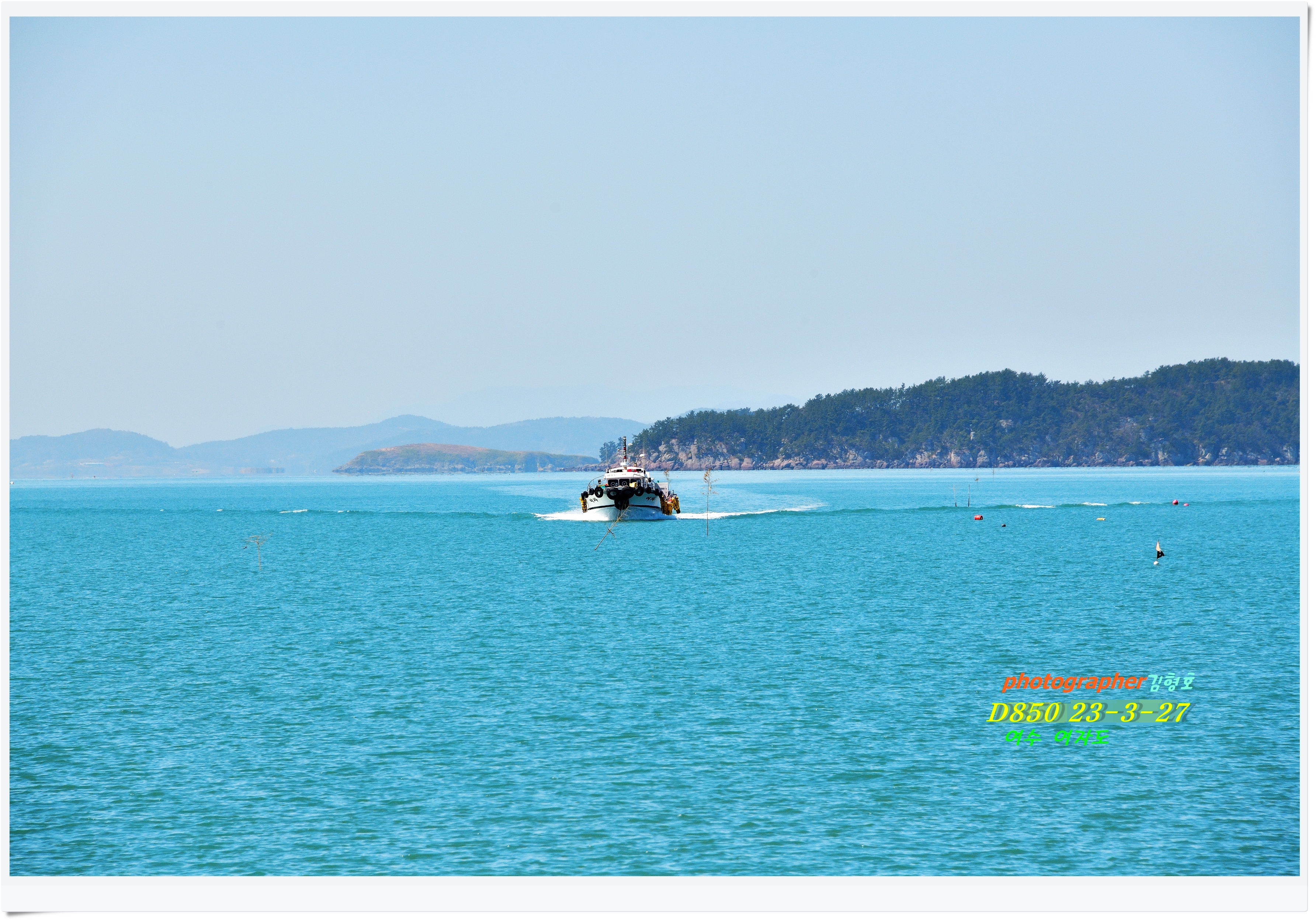 여자도에서 섬달천으로 배가 들어오고 있다.