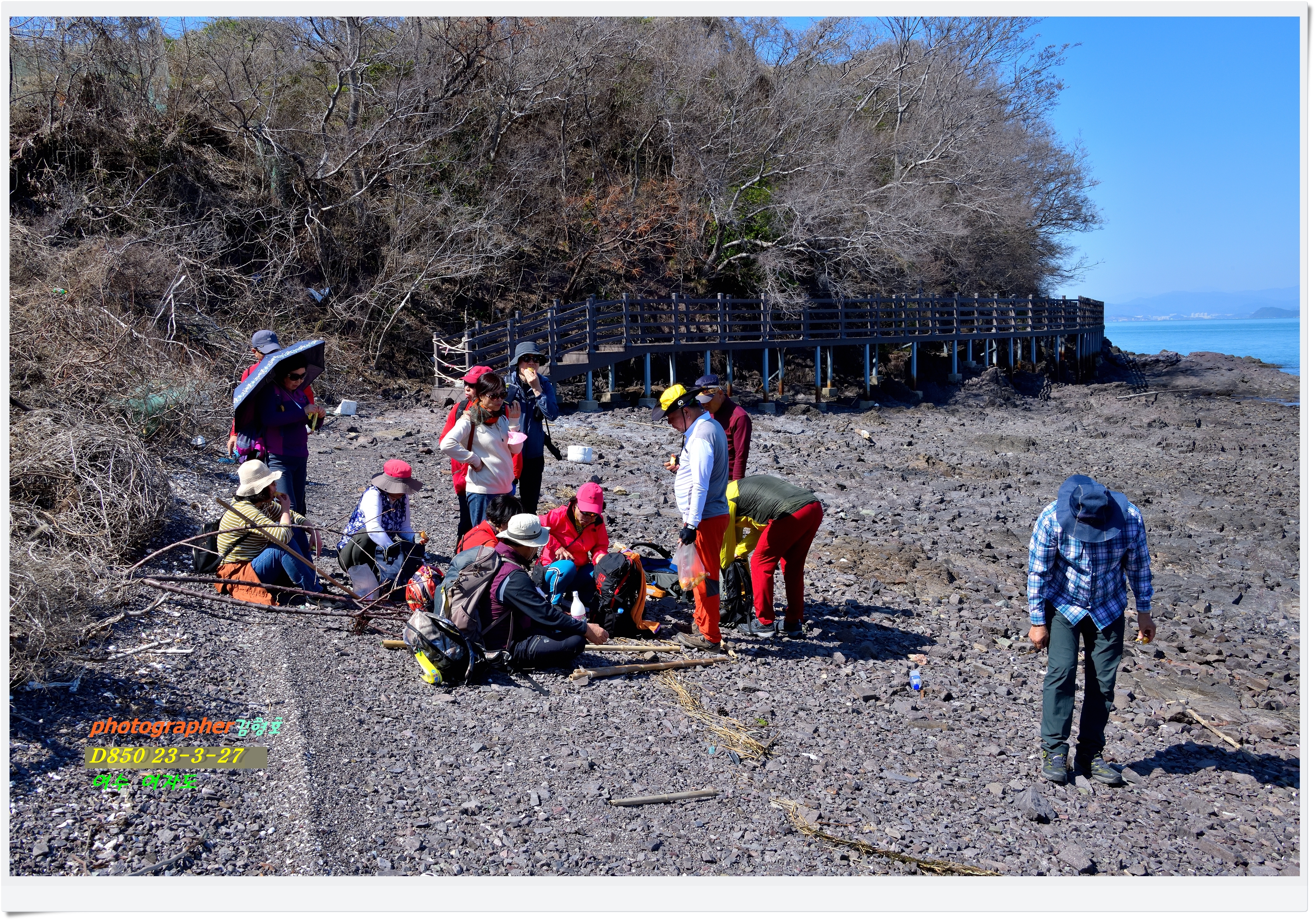 드론 촬영을 끝내니 송여자도를 한 바퀴 돈 일행들이 다리로 모인다.
