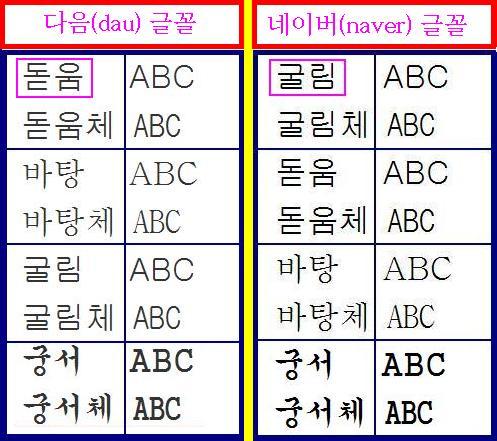 ▶ 다음(daum)과 네이버(naver)의 글꼴 : 동일하다.