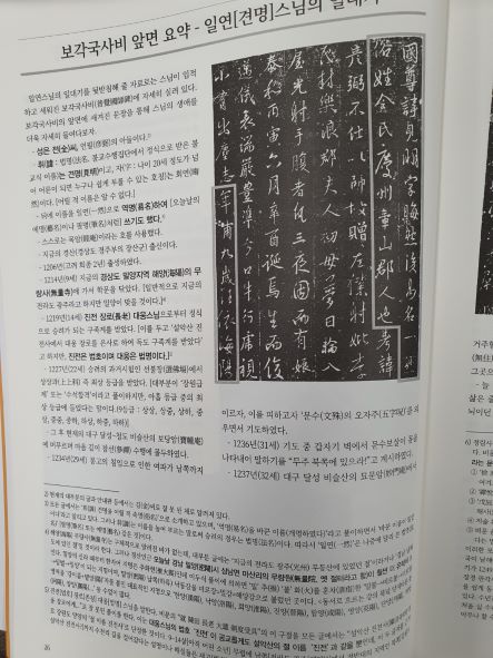 일연스님의 일대기를 뒷받침해 줄 자료로는 스님이 입적하고 세워진 보각국사비(普覺國師碑)에 자세히 실려 있다. 보각국사비의 앞면에 새겨진 문장을 통해 스님의 생애를 더욱 자세히 들여다보자.