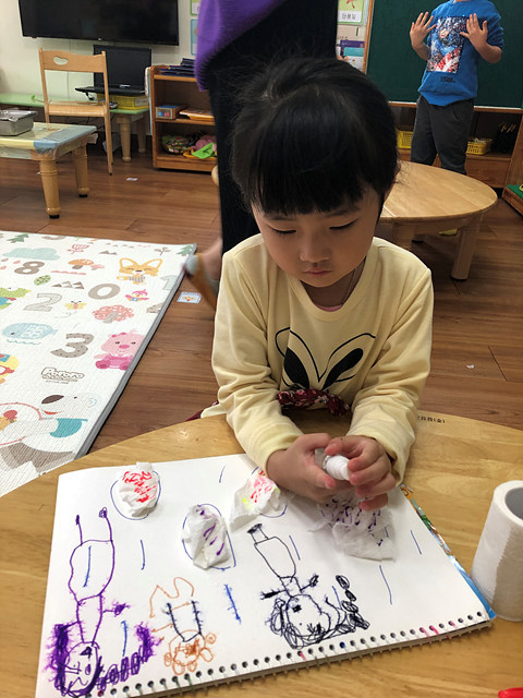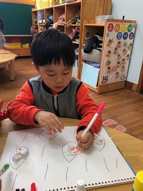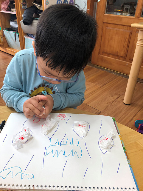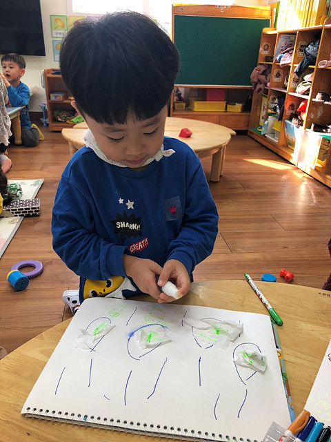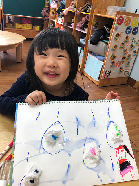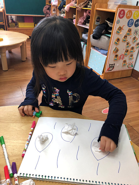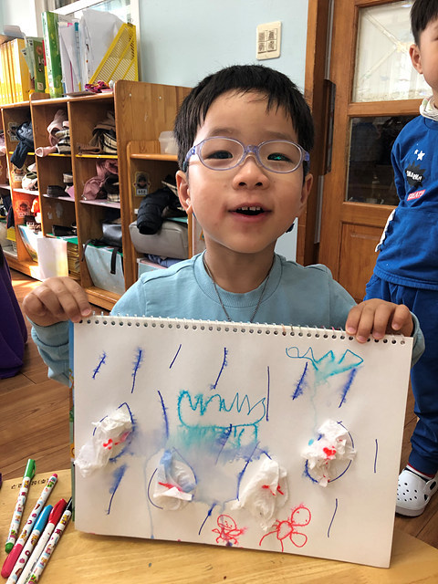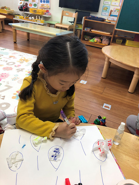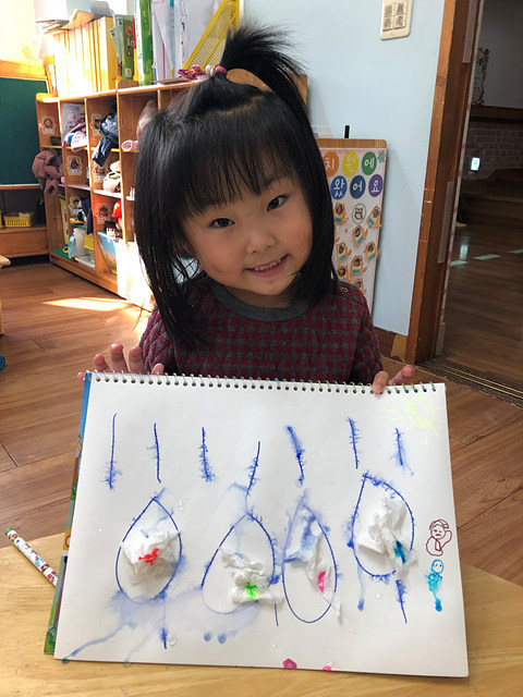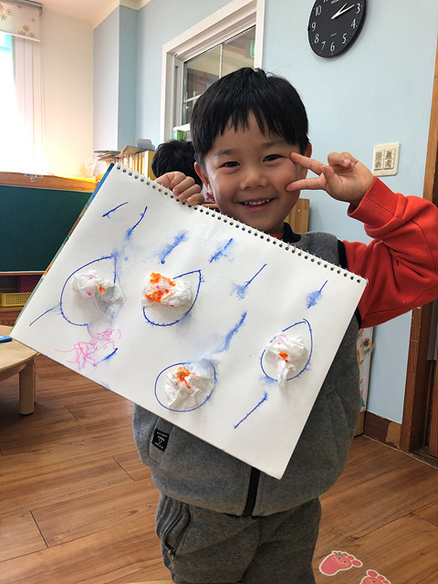 (미술활동) 사인펜 그림에 분무기를 뿌려요 작성자행복한 반|작성시간19.10.31|조회수406 목록 댓글 0 글자크기 작게가 글자크기 크게가 빗방울에 휴지를 붙여 꾸미고 사인펜으로 그림을 그려보았답니다.분무기를 이용해 뿌리니 그림이 번진다며 즐거워 하는 행복한반 아이들 입니다~^^ 다음검색 현재 게시글 추가 기능 열기 북마크 공유하기 신고 센터로 신고 댓글 댓글 0 댓글쓰기 답글쓰기 댓글 리스트
