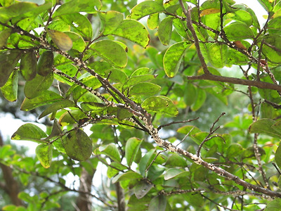 나뭇잎이나 줄기는 까맣게 가루 같은 것이 분포되어 있습니다.