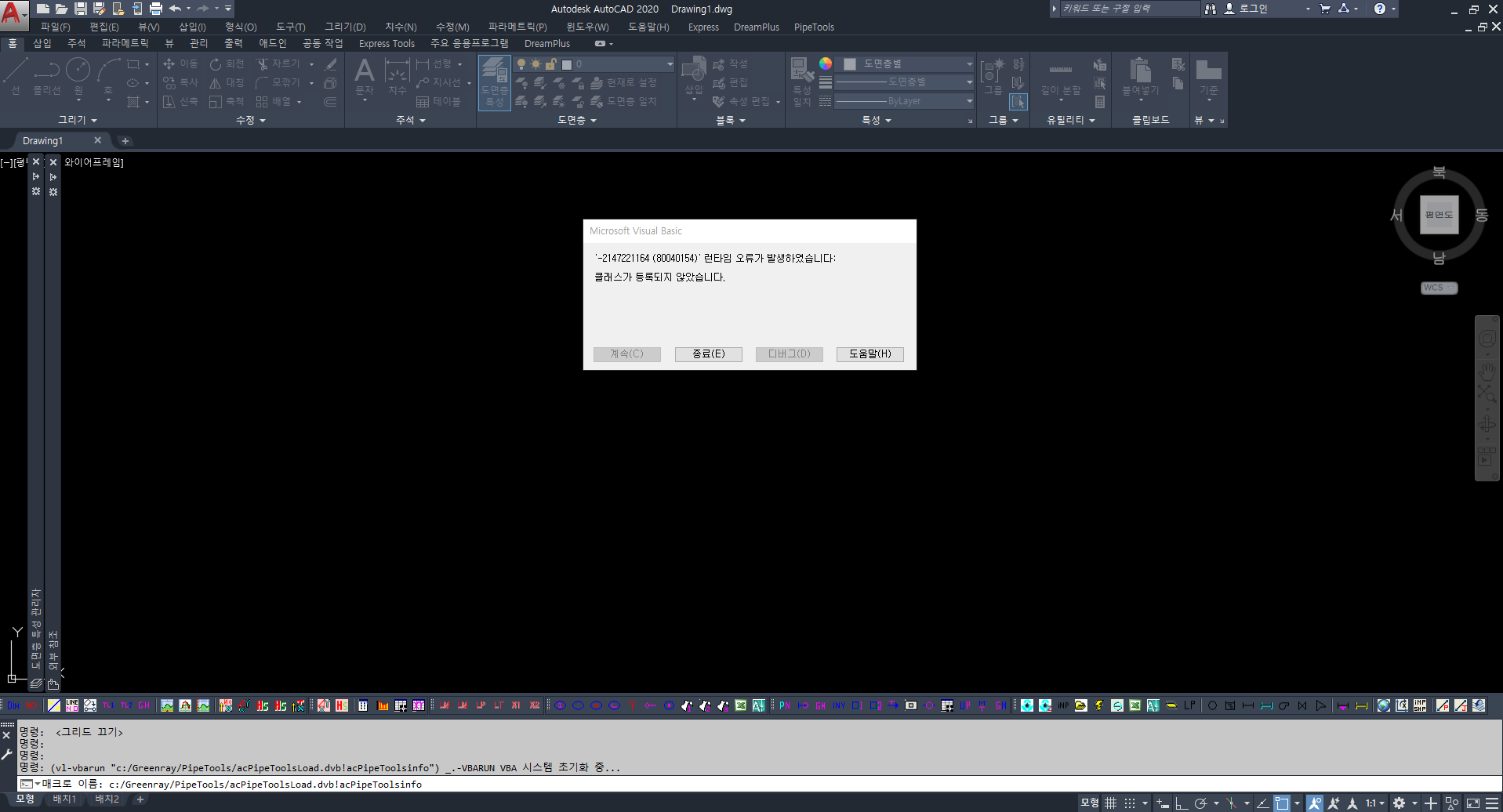파이프툴 실행시 이런 오류가 나오는데 어찌 해야하는지 부탁드립니다.