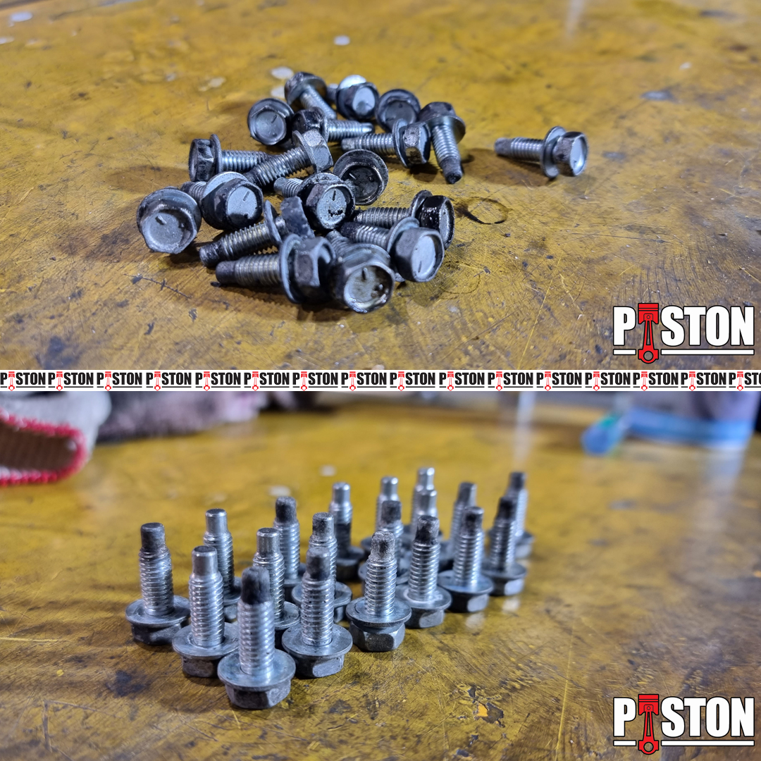 미션오일팬 고정볼트 기름때 깨끗히 닦아 둡니다