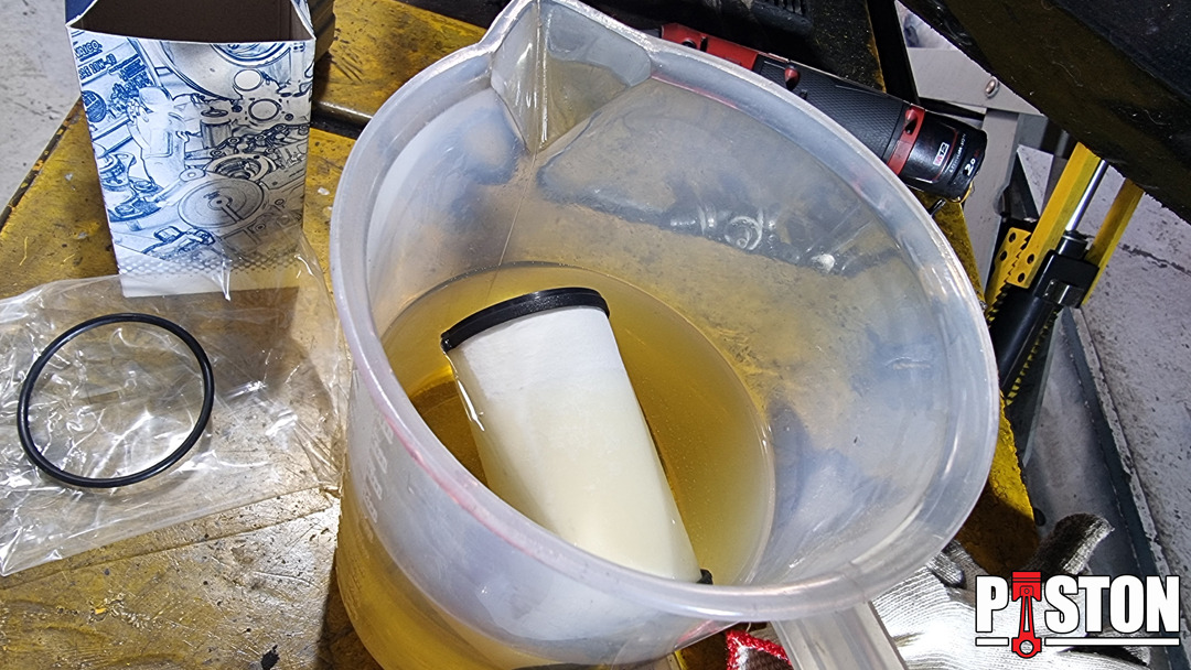 오일필터 하우징 청소후 담궈 놨던 미션오일필터 조립해 줍니다