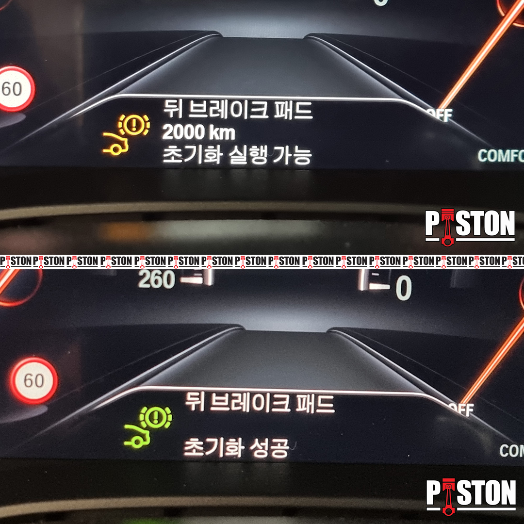점등 되어 있던 브레이크 패드 교환 서비스 경고등 삭제해 준뒤 작업 마무리 합니다