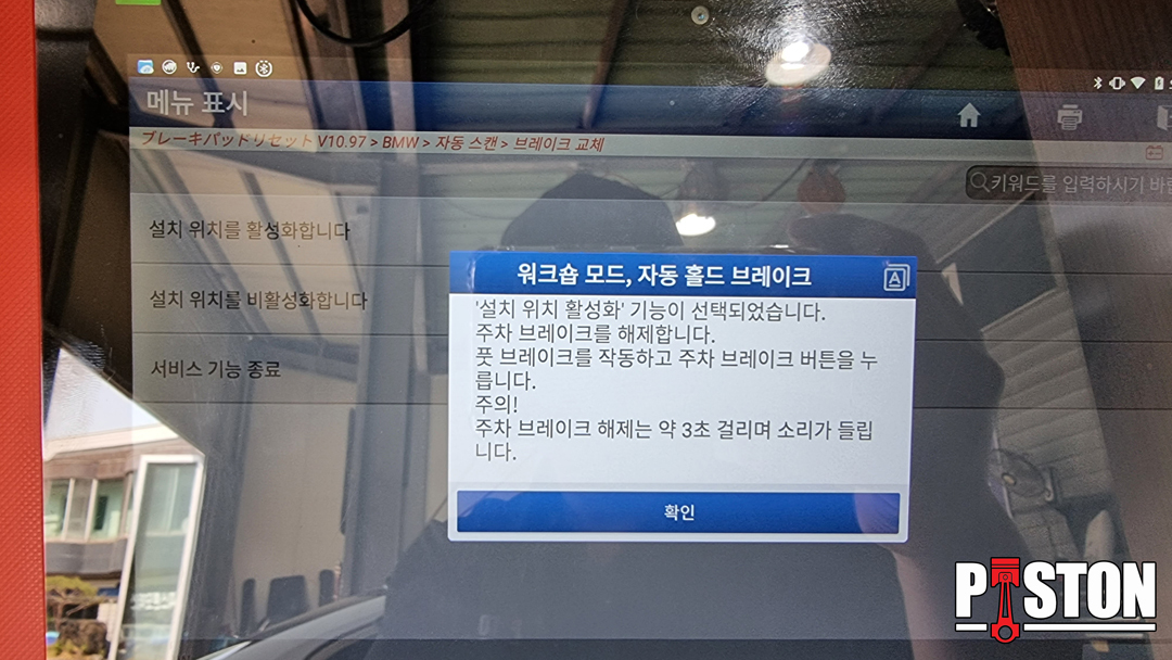진단기를 이용해 전자식 파킹브레이크를 해제 시켜 줍니다