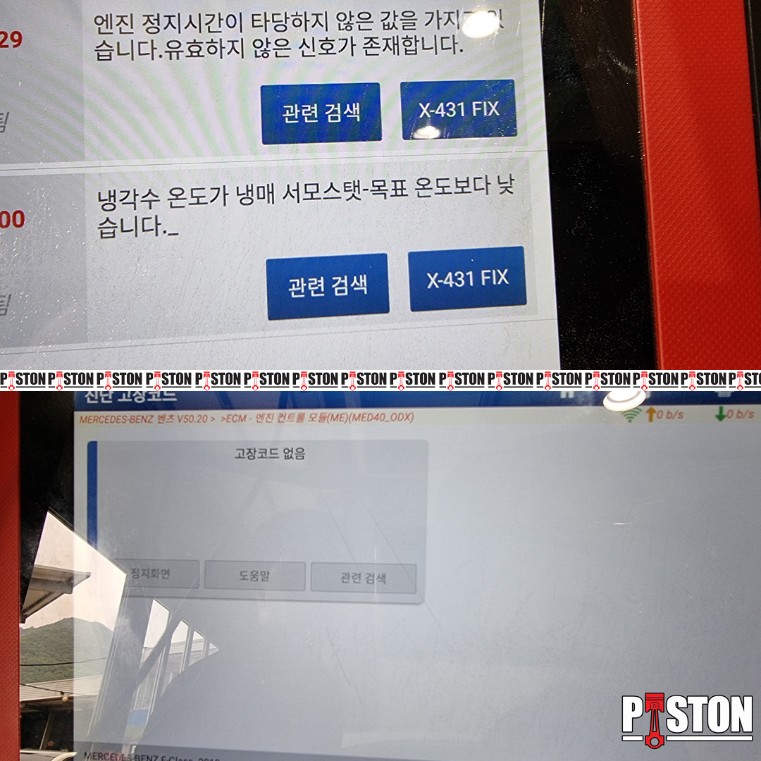 그리고 진단기 연결후 점등 되어 있던 고장코드 삭제