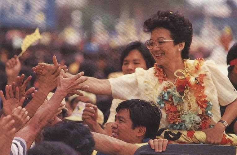 출마를 선언한 후 전국을 돌아다니며 반마르코스 운동을 벌였고 국민들은 코라손을 적극 지지했다.