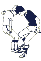 그림 3-3과 같이 체격이 서로 비슷한 두 선수를 볼을 사이에 두고 어깨를 서로 짚고 서도록 한다. 코치의 신호에 의해 두 선수 모두 스탠딩 태클링 자세로 볼에 발을 갖다 댄다. 그 자세에서 이제는 팔을 서로 놓고 어깨와 몸을 이용해 서로 볼을 빼앗기 위해 최대 노력을 경주한다. 이 방법은 태클의 기초 훈련단계에서 사용될 수 있는 훈련방법이다.
