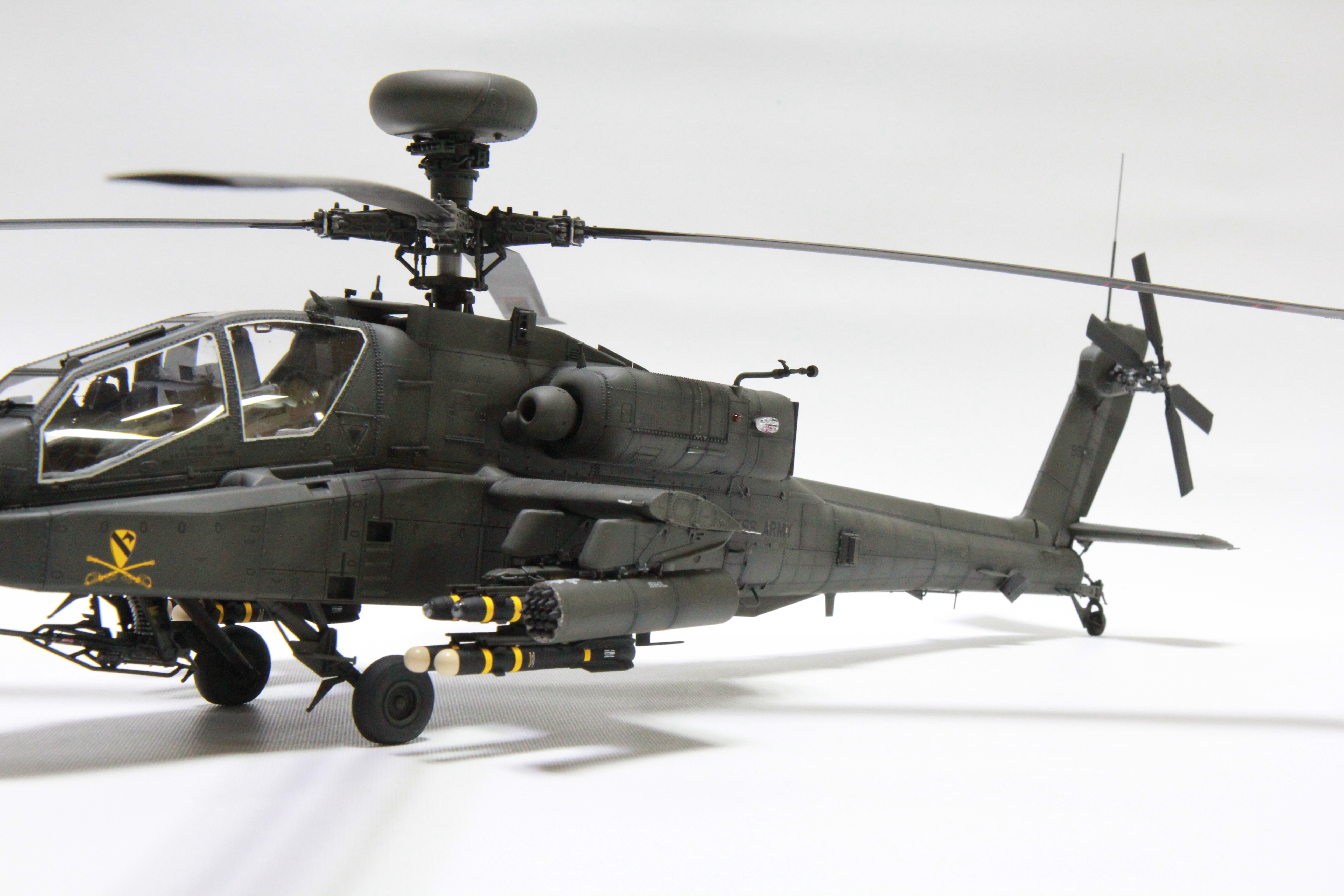 전체적으로 잘 조립됍니다. 도색할때 AK색으로된것을 락카도료로 그냥 도색했습니다. 미군 아파치에 미군 안테나가 FM안테나가 없어 스노우맨 아파치에서 이식했습니다. 마음엔 안들지만 잘 봐 주세요.