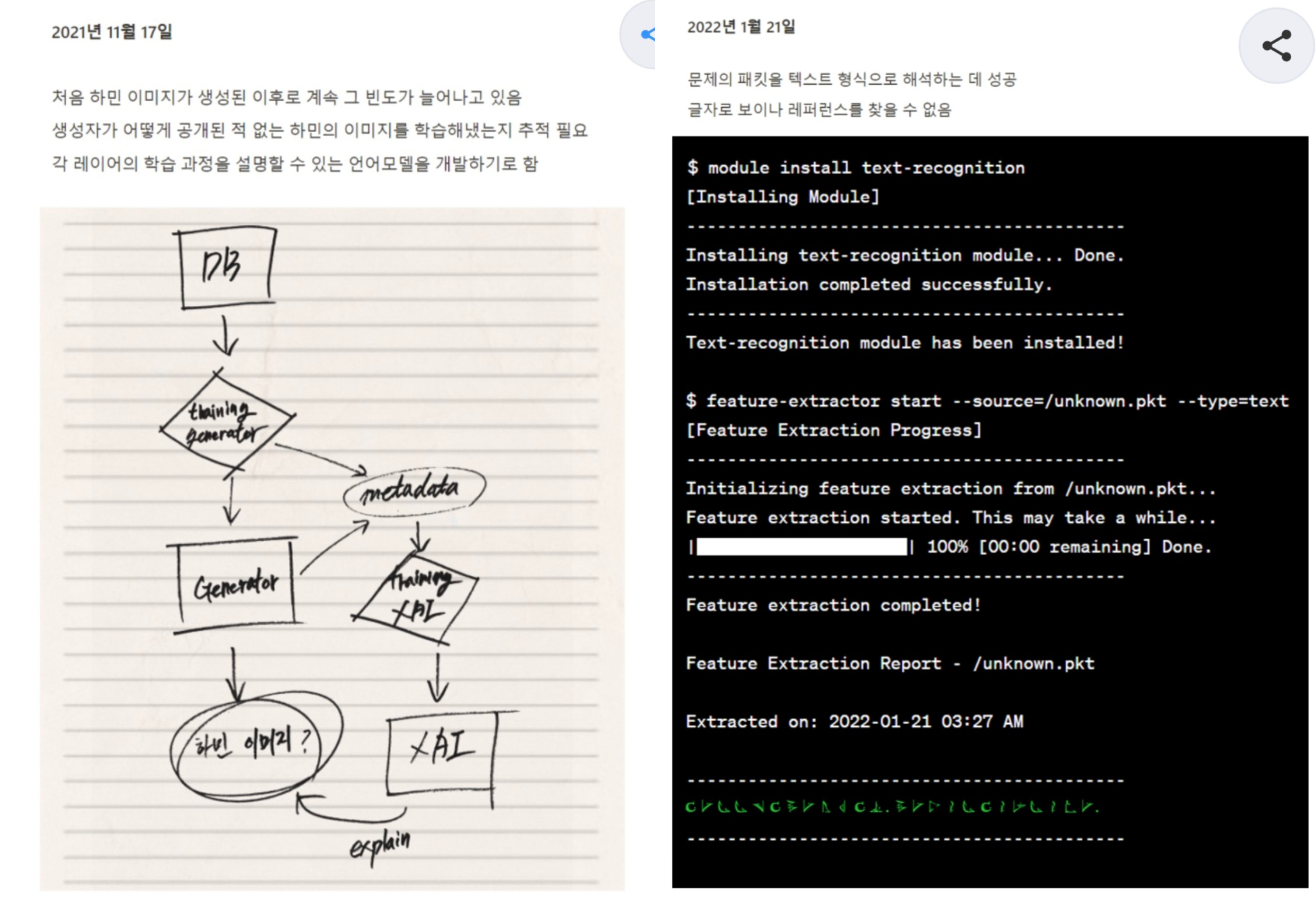 컴퓨터가 하민이의 이미지를 생성해내는 것이 이상했던 개발자는 이미지가 생성되는 과정을 설명할 수 있는 언어모델을 개발하기로 합니다.