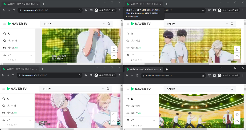 - 바둑판 모양으로 모든 창의 영상이 보이는 상태에서 스밍 (최소화X)