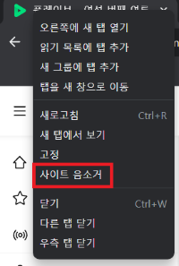 - 기기 자체 음소거 가능 ( 탭 영역 우클릭 - 사이트 음소거(탭알림 차단) )