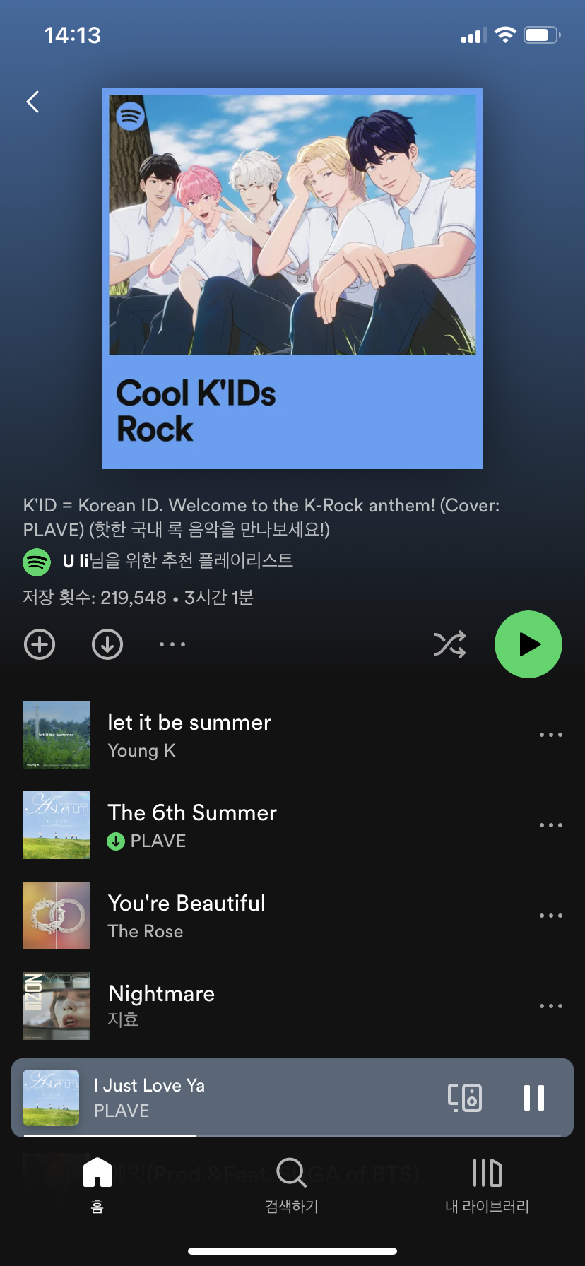 스포티파이 커버 플레이브! 작성자하루의끝너와나|작성시간23.08.28|조회수310 목록 댓글 4 글자크기 작게가 글자크기 크게가 너무 감격ㅠㅠㅠㅠㅠㅠㅠ 플리분들 너무 잘해주고 있어요🤗👍👍👍👍나날이 오르는 기록 보면 진짜 뿌듯해요..💙💜💗❤️🖤 다음검색 현재 게시글 추가 기능 열기 북마크 공유하기 신고 센터로 신고 댓글 댓글 4 댓글쓰기 답글쓰기 댓글 리스트 작성자봄날의봉구 | 작성시간 23.08.28 매일매일이 기쁘고 행복하네요🥹💙💜💗❤️🖤 답댓글 작성자하루의끝너와나 작성자 본인 여부 작성자 | 작성시간 23.08.28 그니까요ㅠㅠ 플레이브 덕분에 살아갈 맛이 나네요ㅠㅠ🥹 작성자케세라세라 | 작성시간 23.08.28 대박 미쳤다ㅜㅜㅜㅜ저도 계속 스포티파이에서 노래듣는중인데!!ㅠㅜ계속 튼 보람이ㅜㅜ저도 보러갈래요ㅜㅜ 답댓글 작성자하루의끝너와나 작성자 본인 여부 작성자 | 작성시간 23.08.28 얼른 보러가세요!! 진짜 눈물나요😭💙💜💗❤️🖤 댓글 전체보기