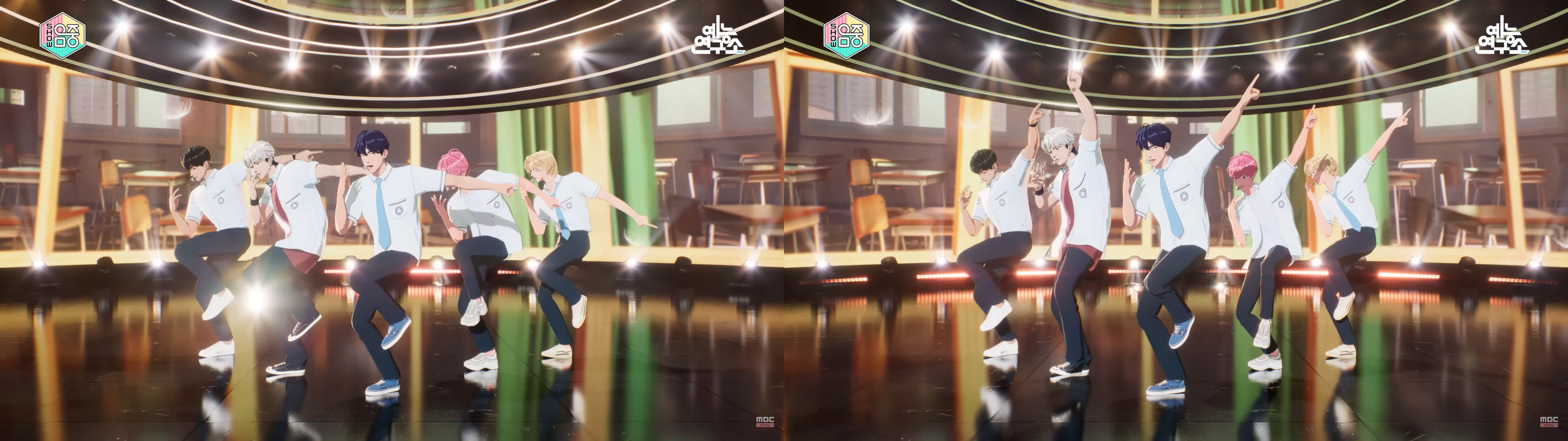 그리고 조금 애매하지만 무대에서도 '여섯번째 여름의 시작'이라는 가사와 함께 팔이 시계 반대방향으로 돌아가는 안무가 있습니다. 음원에서는 시계 초침 소리가 들리기에 시간이 뒤로 돌아가는 연출이 연상됩니다.