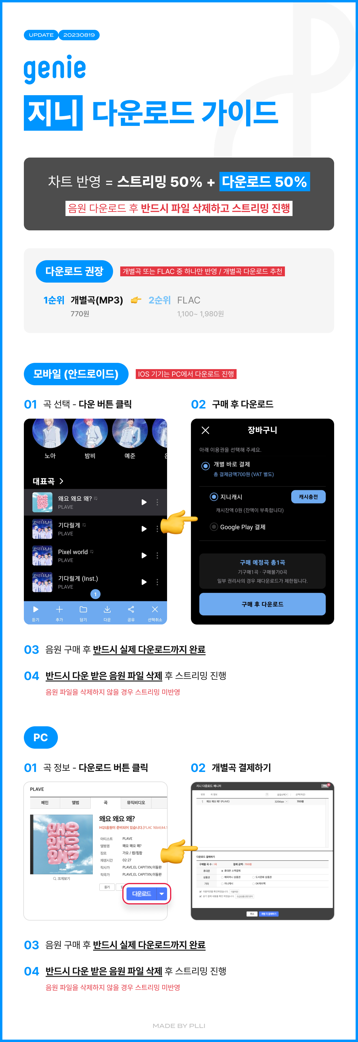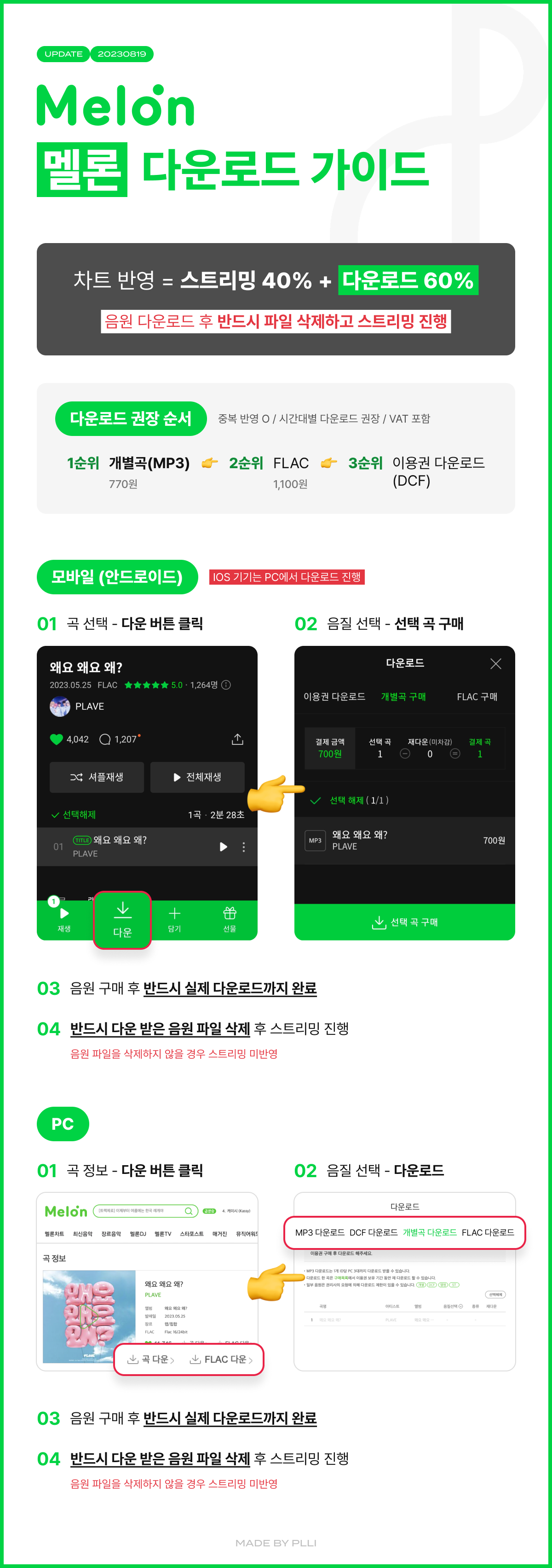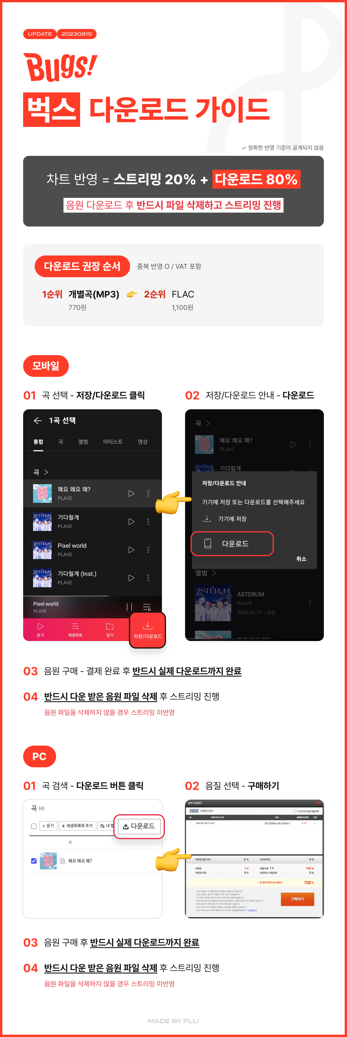 음원 다운로드도 집계됩니다. 다운 받아서 그걸 듣는 건 아니예요. 다운 후 그 음원 파일은 꼭 삭제해주세요!
