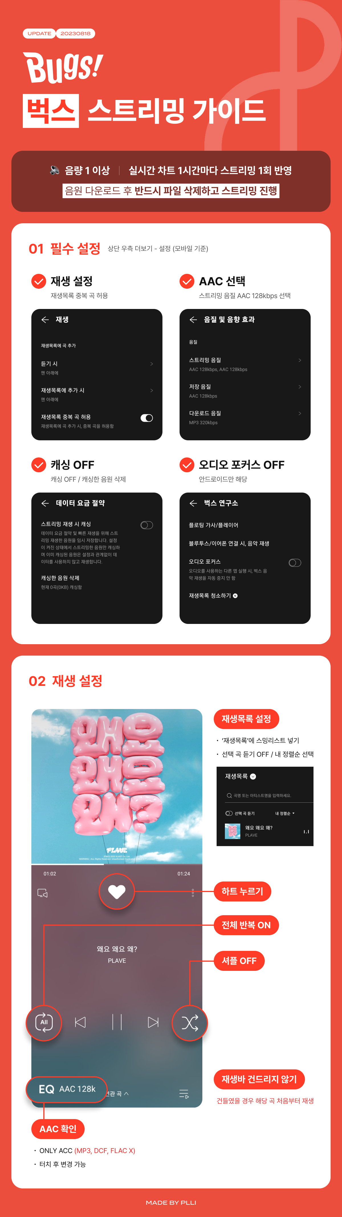 ※ 멜론 지니 벅스 - "스트리밍" 가이드 (10월 업데이트 버전)