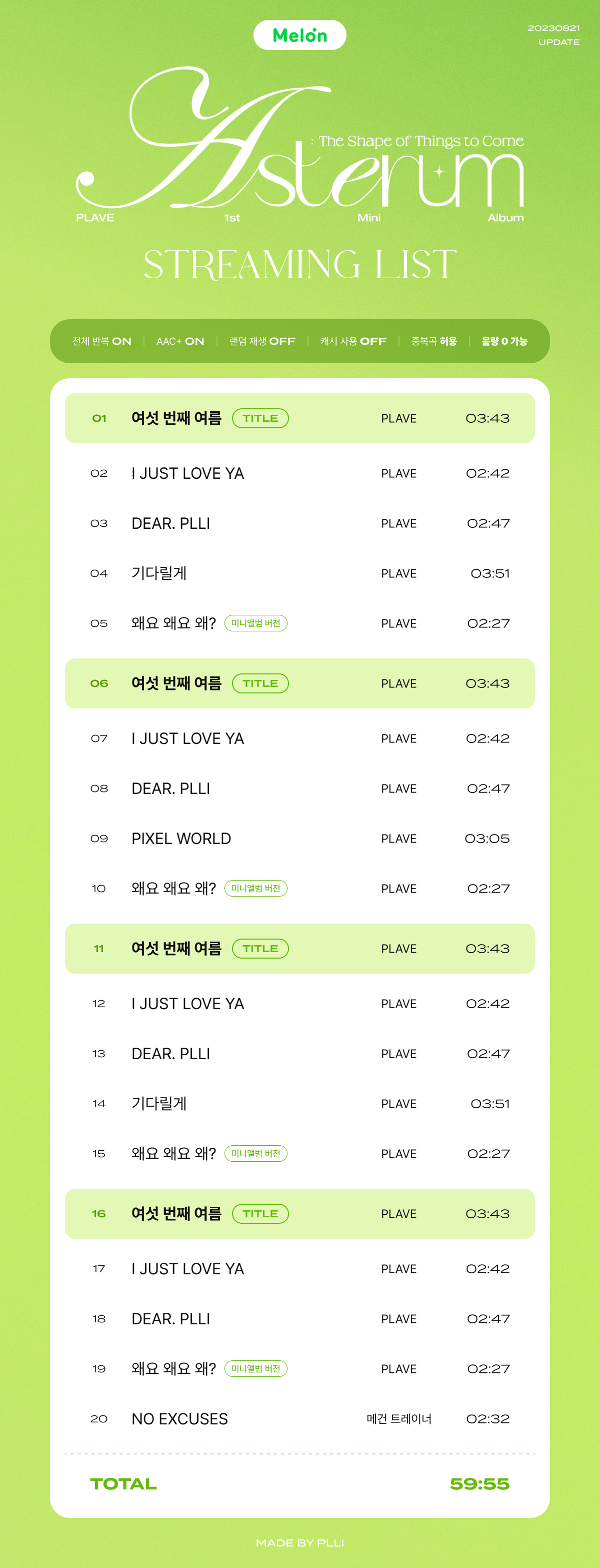 23년 10월 21일 변경된 멜론 스트리밍 리스트를 수정하여 끌올합니다.