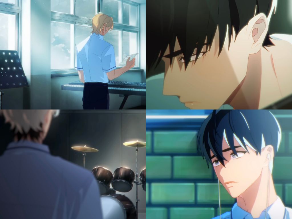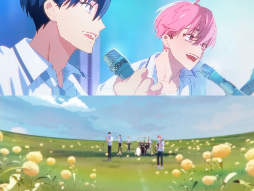 8. 완전체가 된 멤버들이 함께 연주하는 장면은 마치 꿈만 같습니다. 늘 함께 연주했던 모습 그대로였고, 이내 배경이 아름다운 메리골드가 만개한 들판으로 바뀝니다. -> 또다시 비현실적인 상황 -> 꿈