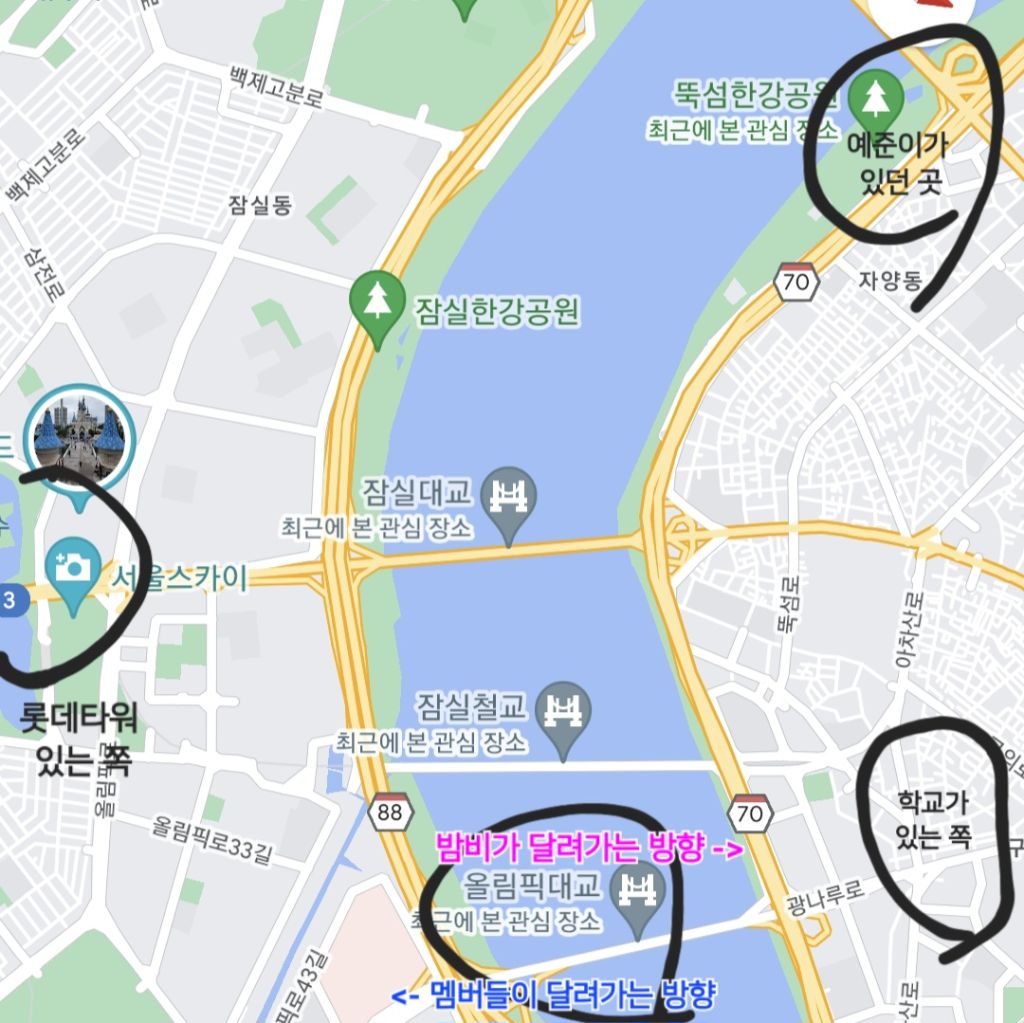 ✔️ 밤비와 멤버들이 달려가는 다리는 올리픽대교로 추정되는데,