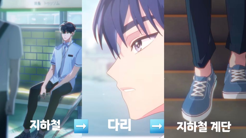 또 다시 각자 달려가는 연출이 나오고 학교에 도착합니다.