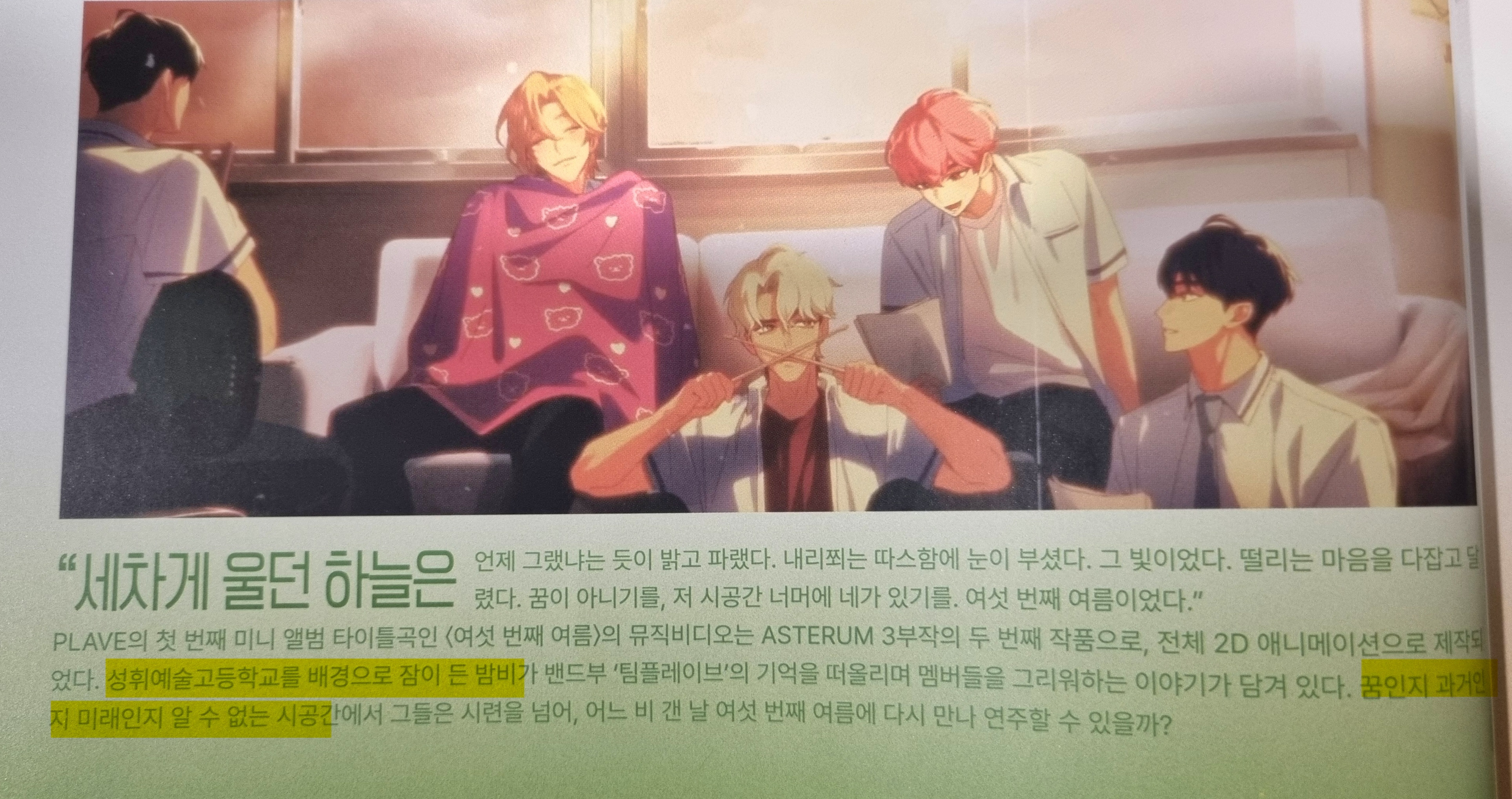 즉, 멤버들과의 행복했던 순간을 추억하면서 타임리프를 반복하는 밤비의 외로움이 꿈속에 그대로 반영된게 바로 6여름뮤비라는거죠.