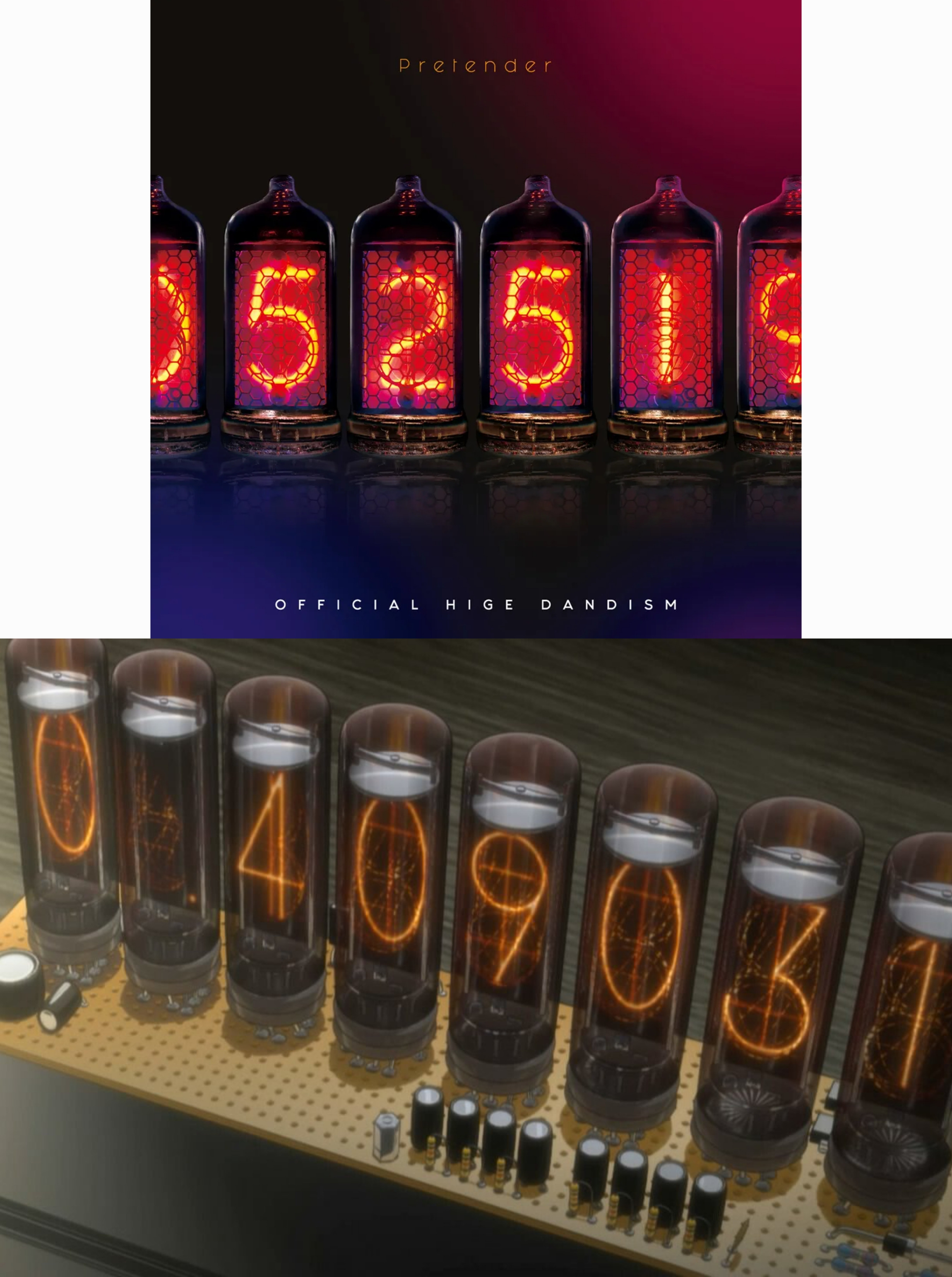 Pretender는 '슈타인게이트'라는 애니의 영향을 받아 만들어진 곡으로, 원곡 앨범의 커버이미지는 작중에서 중요하게 여겨지는 '다이비전스 미터기'라는 기계의 모습입니다.