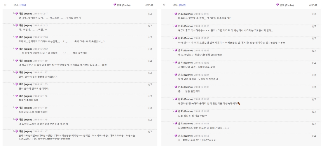 위에서 검색돋보기를 누르면 이렇게 예준이가 쓴 댓글만 모아 보실 수 있습니다.