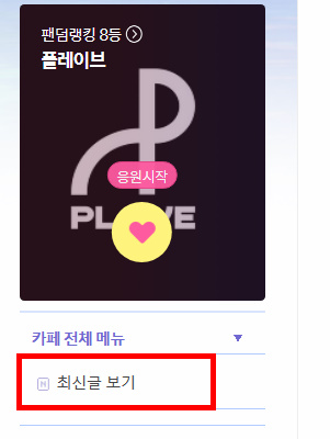 먼저 카페 메뉴 최상단에 있는 최신글 보기를 눌러줍니다.