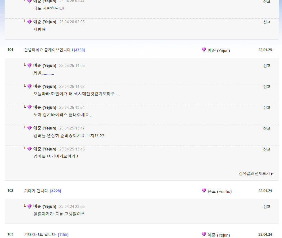 최신글 목록에서 스크롤을 아래로 아래로 내려서 검색 창으로 갑니다.