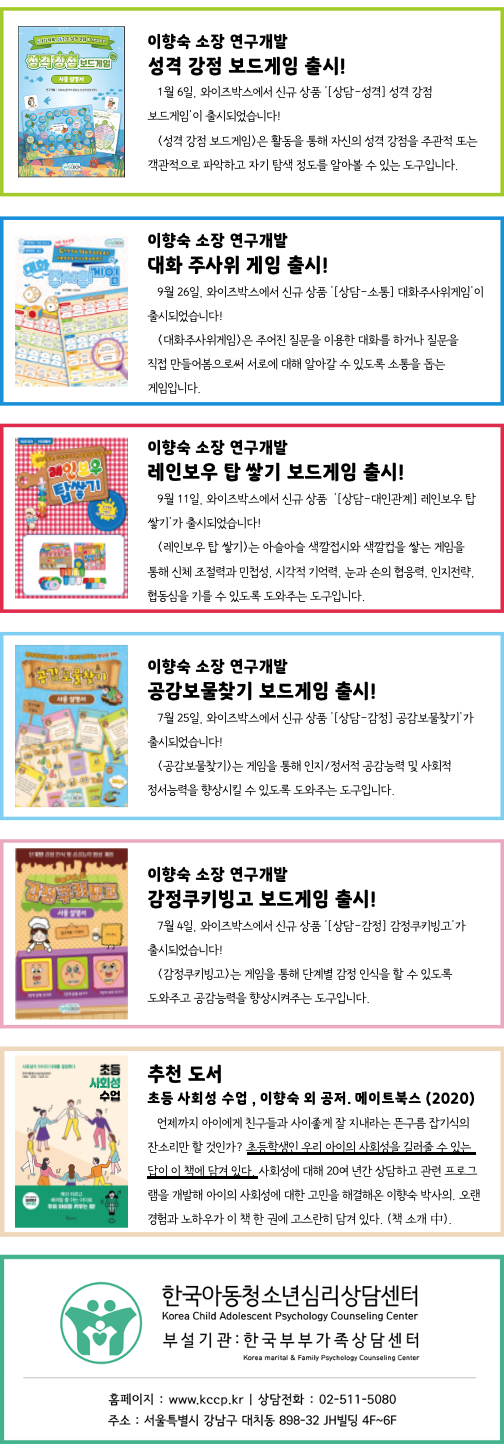 저서) 초등 사회성 수업 , 이향숙 외 공저. 메이트북스 (2020)