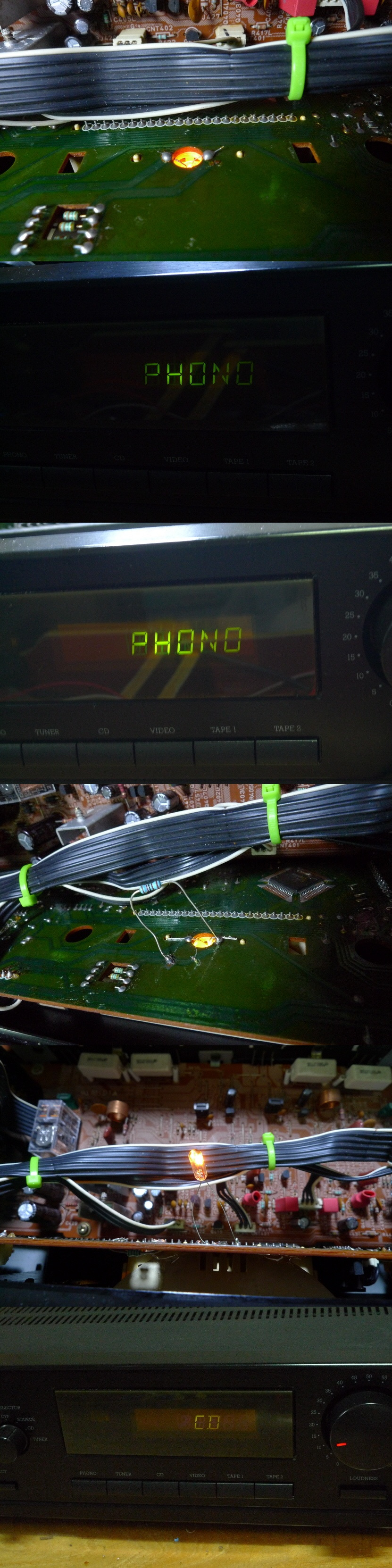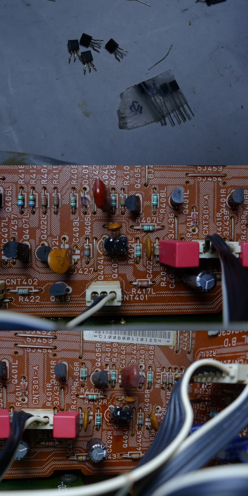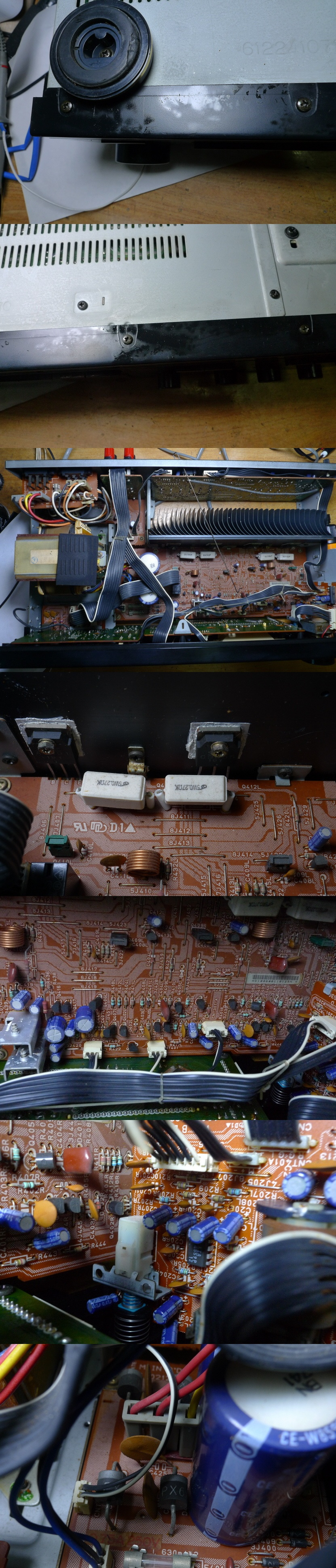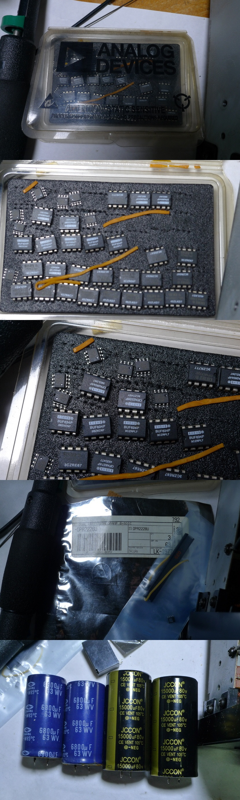 파워 앰프 초단 차동 회로 TR 4개를 전류 증폭율 선별한 TR로 교환,온도 변화에 상보하게끔 에폭시로 접착,