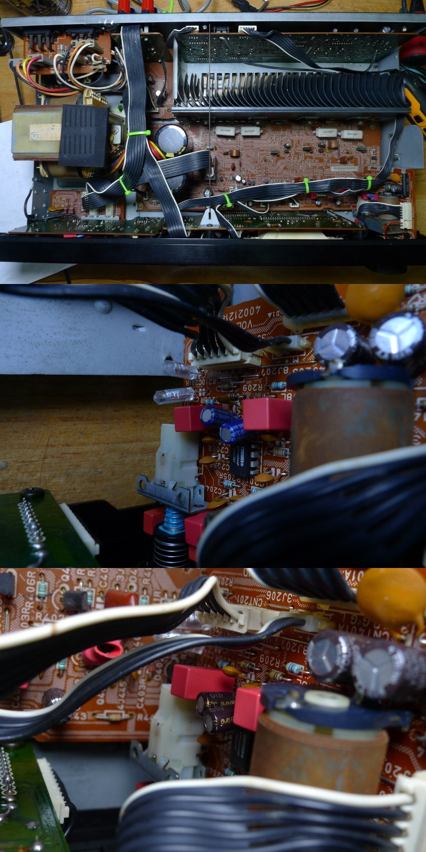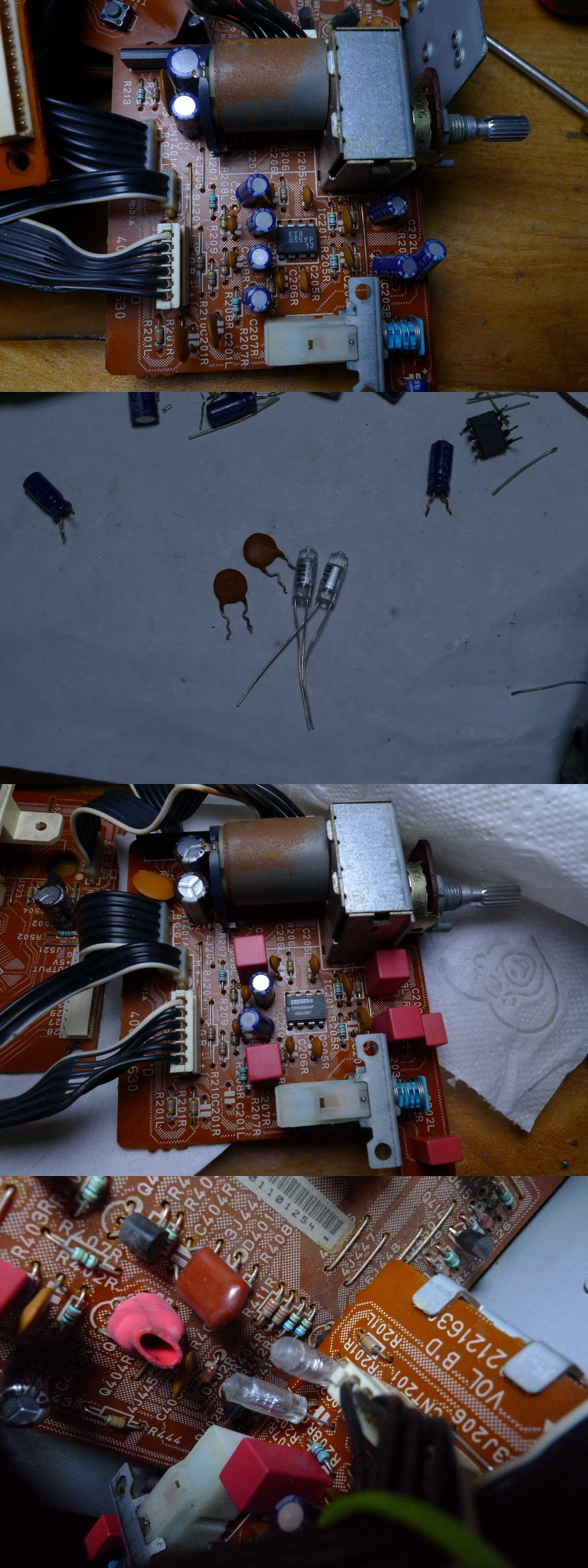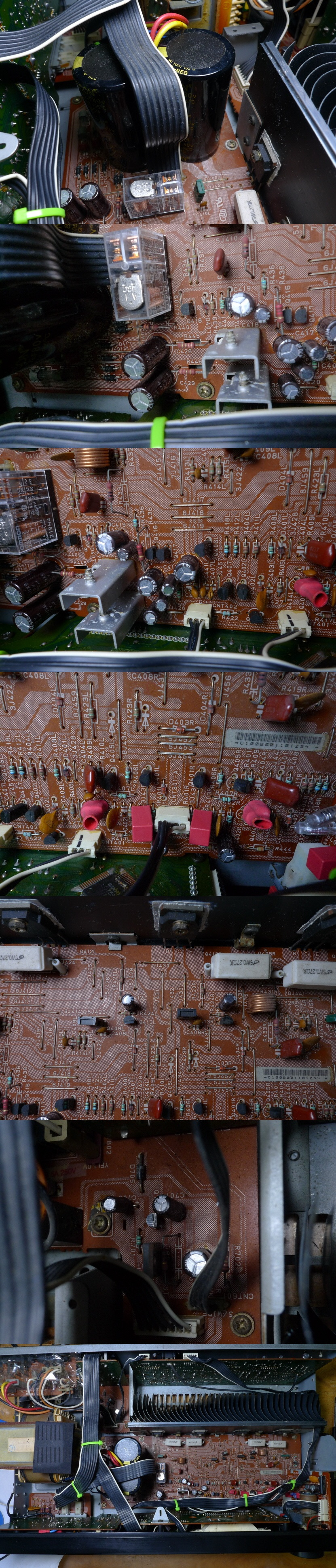 사진을 보시면 기판 중간에 전원 바이페스용 케페시터 2개가 교환하지 않고 그대로인데 정신이 없습니다.