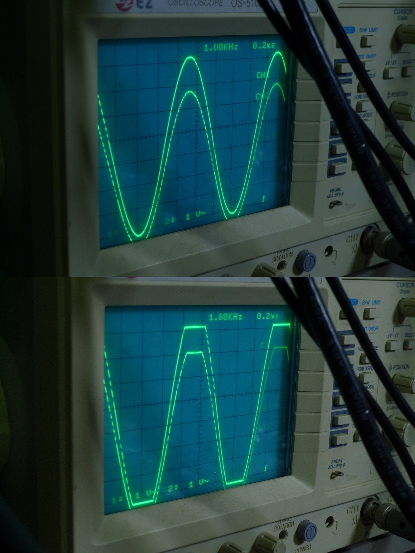 8옴 부하,1KHZ 최고 출력,클립 파형 잘 나옵니다.
