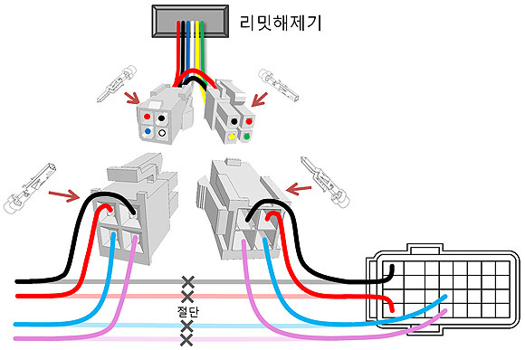 커넥터 없이 배선을 직접 연결 할 수도 있지만 A/S를 위해 리밋해제기를 분리하고