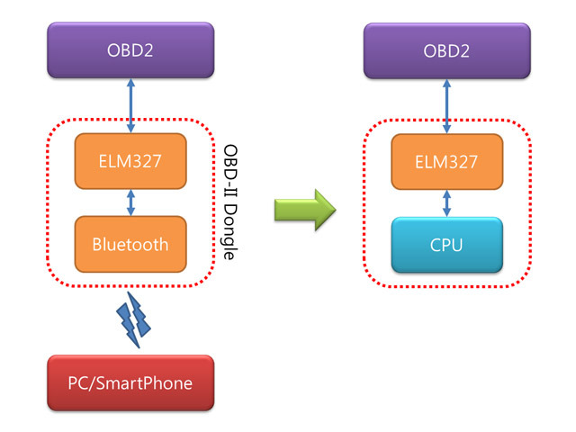 "제어 회로(CPU보드)를 OBD2 동글 안에 넣을 수 있지 않을까?"