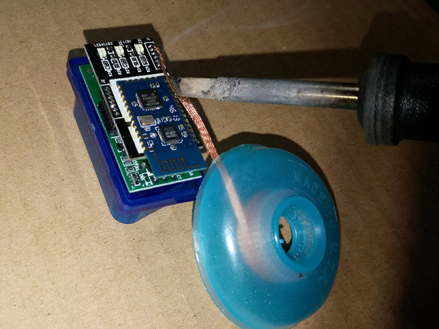 아래 사진처럼, 블루투스 모듈을 떼어낸 자리에 새로 제작한 제어회로를 부착합니다.
