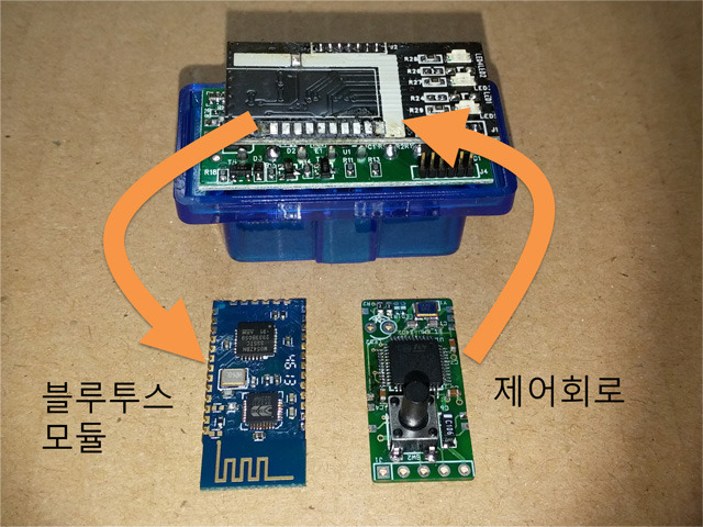 그래서, 시중에서 쉽게 구할 수 있는 OBD2 블루투스 동글을 개조하여