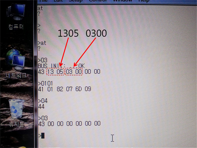 PC를 통하여 AT 커맨드로 오류를 읽어봤습니다.
