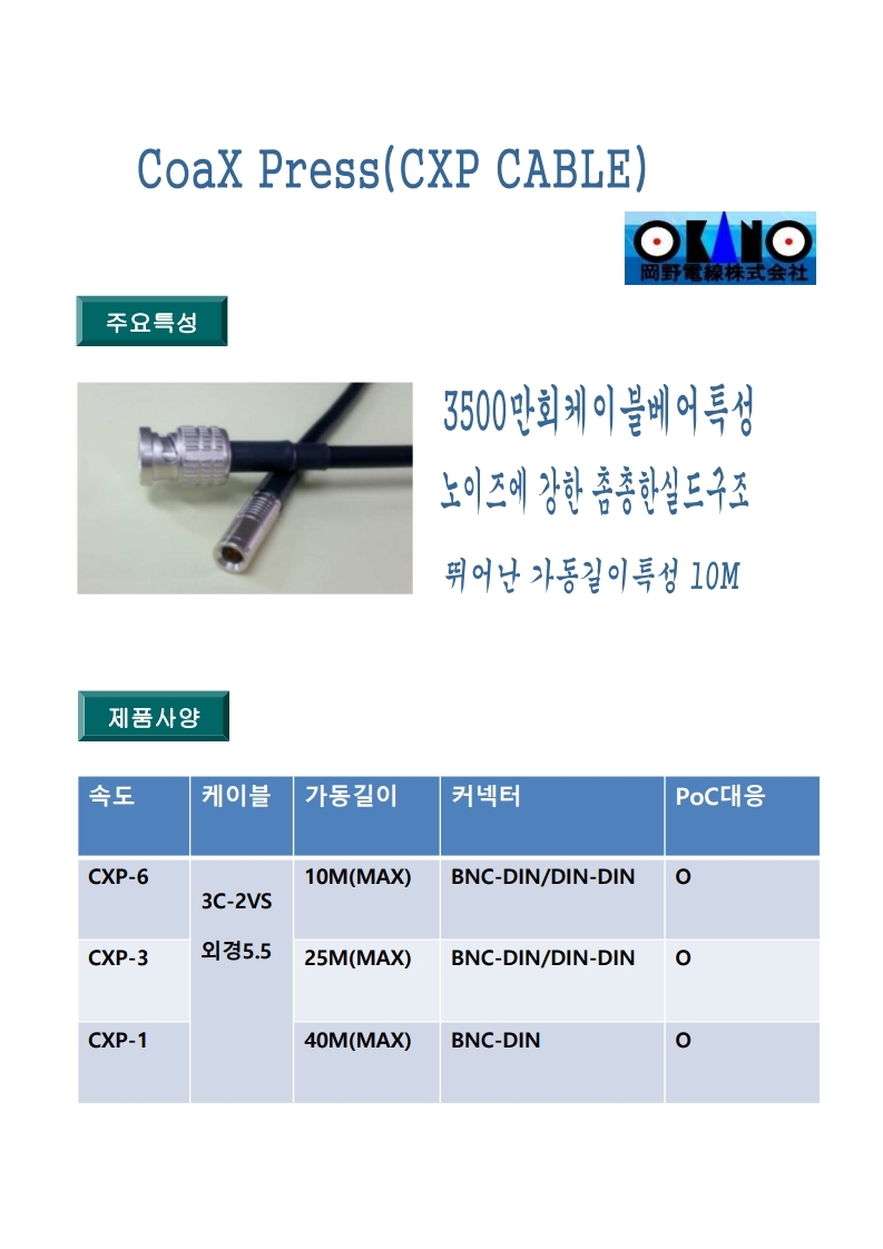 일본 FA CABLE업체인 OKANO사 케이블 소개합니다.
