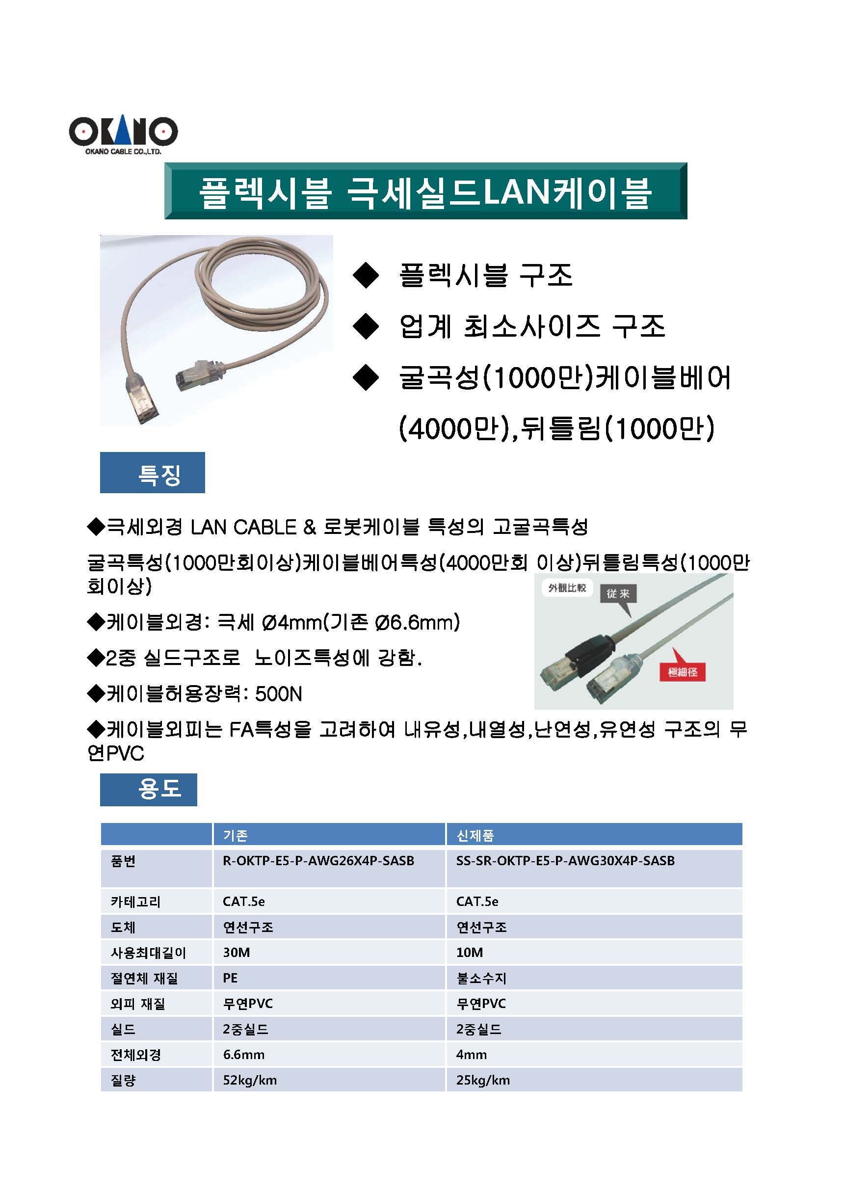 당사에서 취급하고 있는 일본오카노사의 가동형 이더넷케이블/CXP