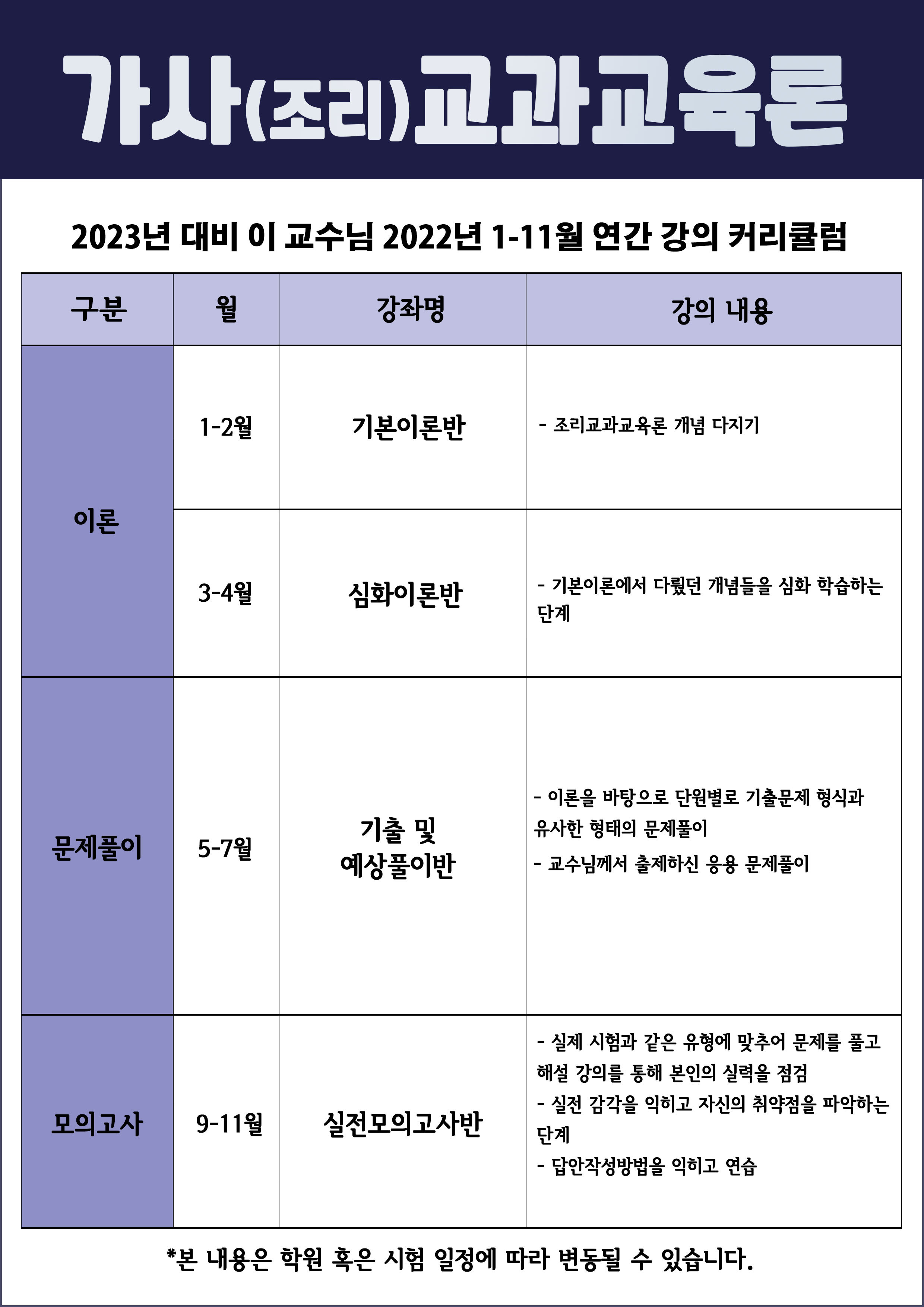 2023년 대비 가사(조리)교과교육론 [이 교수님] 연간 강의 커리큘럼 작성자조리 조교|작성시간21.12.05|조회수193 목록 댓글 0 글자크기 작게가 글자크기 크게가 추가 문의 ▶ http://pf.kakao.com/_Urqub일등고시학원_GOSIRO 임용임용의 메카, 일등고시학원입니다.pf.kakao.com 다음검색 현재 게시글 추가 기능 열기 북마크 공유하기 신고 센터로 신고 댓글 댓글 0 댓글쓰기 답글쓰기 댓글 리스트