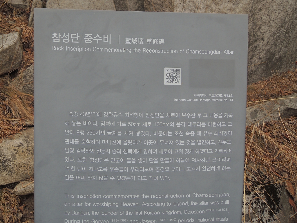 ▲ 참성단 중수비 안내문 입니다.